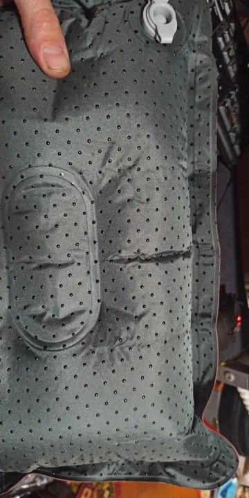 Подушка неплохая, мне лежать на ней удобно. Одна сторона что то типа замши другая с пупырышками. Пупырки наверно должны быть для противоскольжения, но на моей подушки они чутли не стеклянные и нафиг они не нужны. Наподобие такой же подушки, но самонадувайка с наполнителем внутри должна быть интересней чем эта.