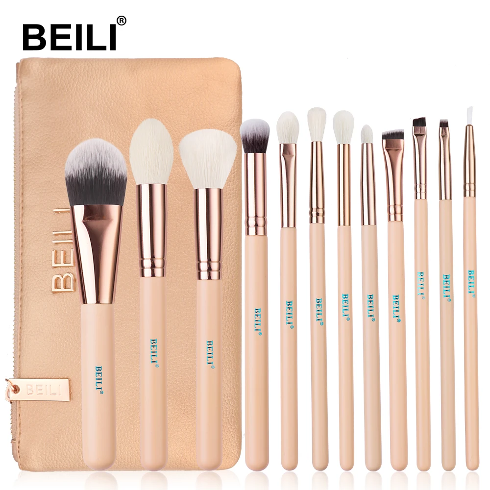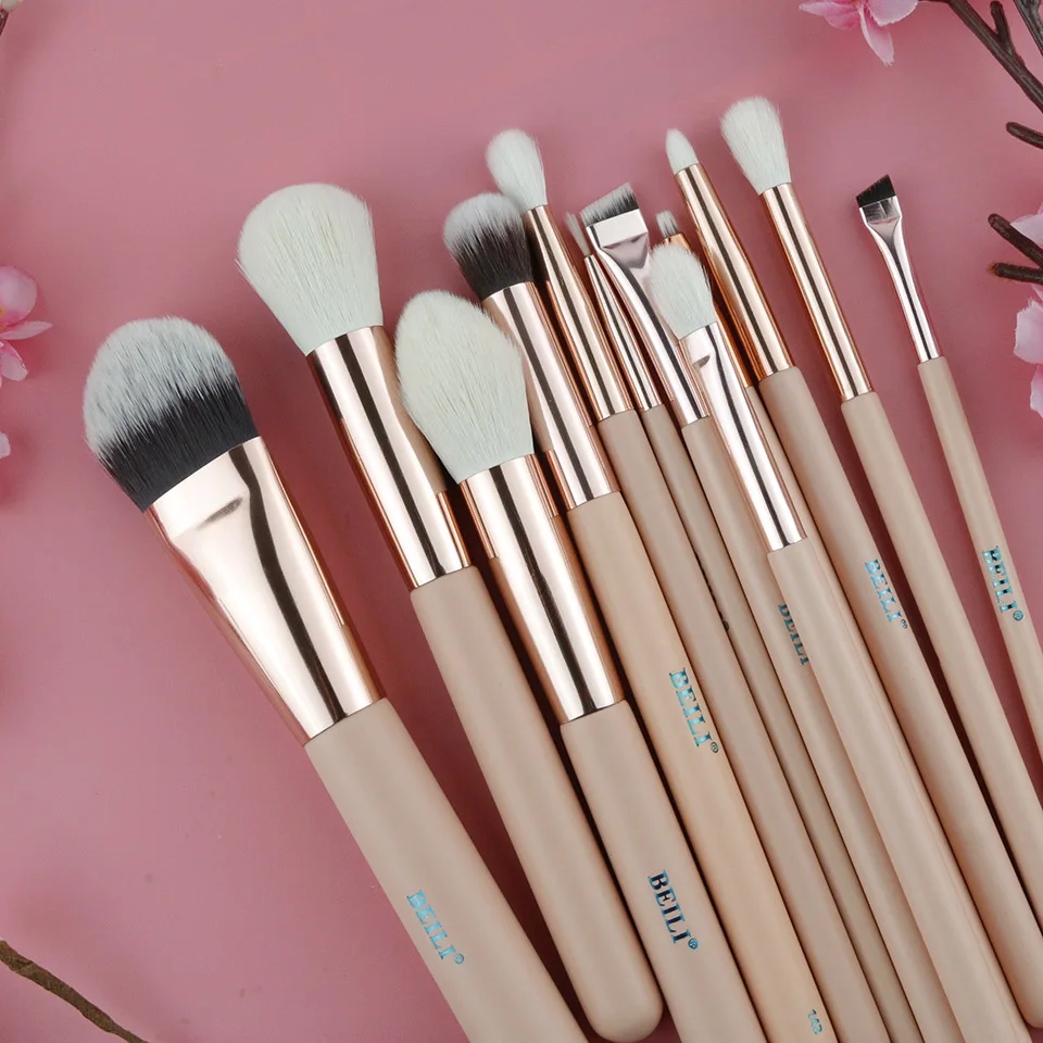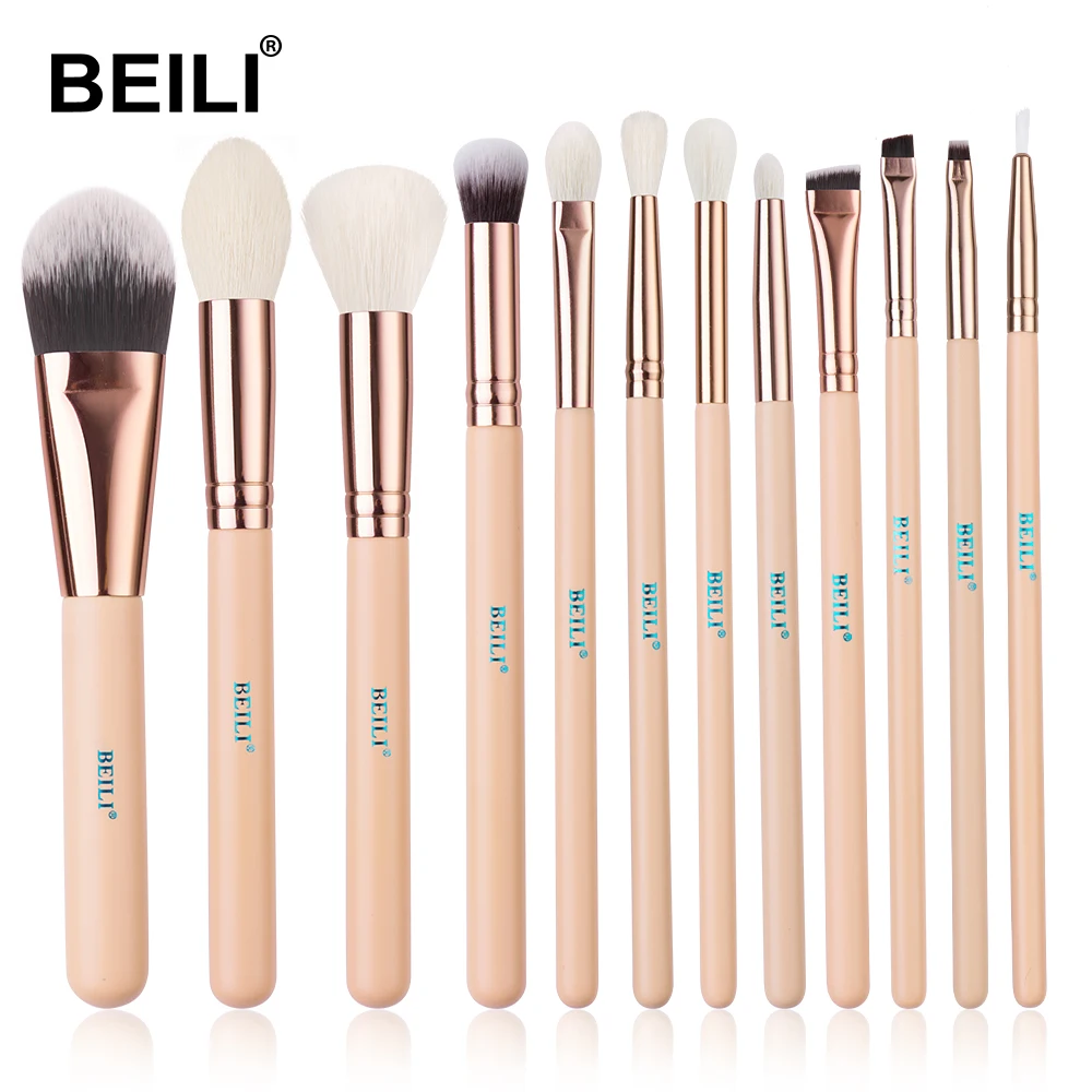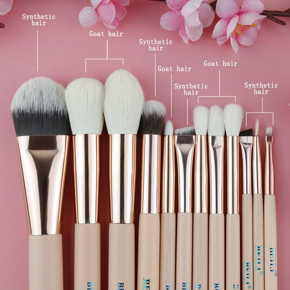 12 шт., набор кистей для макияжа, из натуральной козьей шерсти