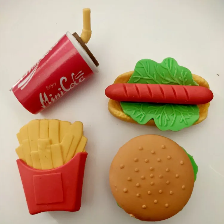 4 шт.упак. Kawaii Резиновый Большой фруктовый торт гамбургер еда напиток Кола ластик для детей Новинка Канцелярские товары детский подарок милая игрушка