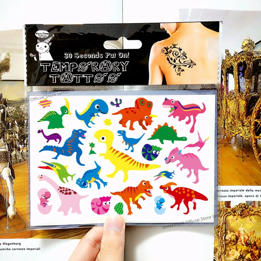 SHNAPIGN маленькие динозавры, Детские Мультяшные Временные татуировки, стикеры, модные, летние, стильные, водонепроницаемые, для девочек, мальчиков, лидер продаж