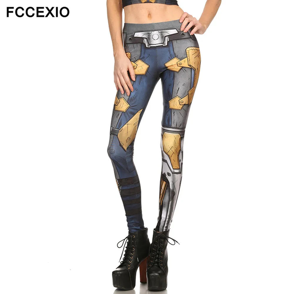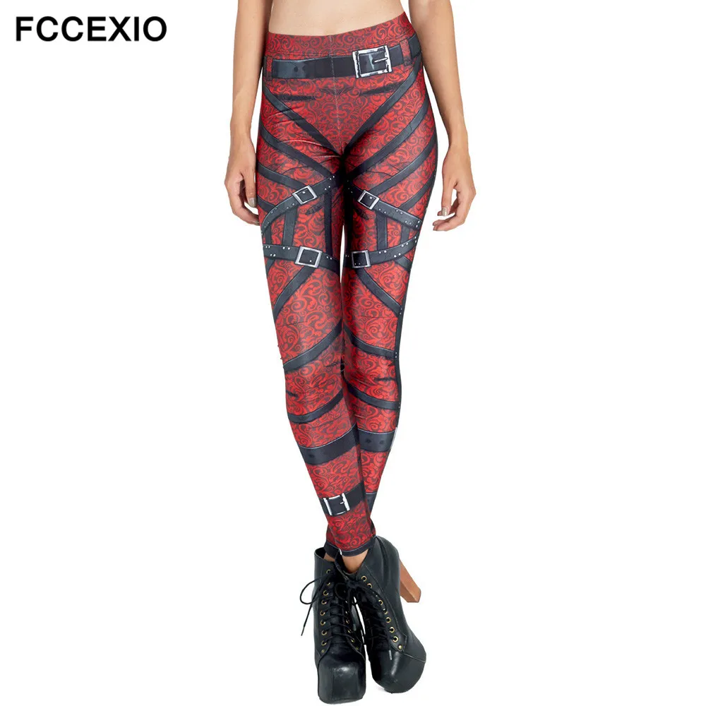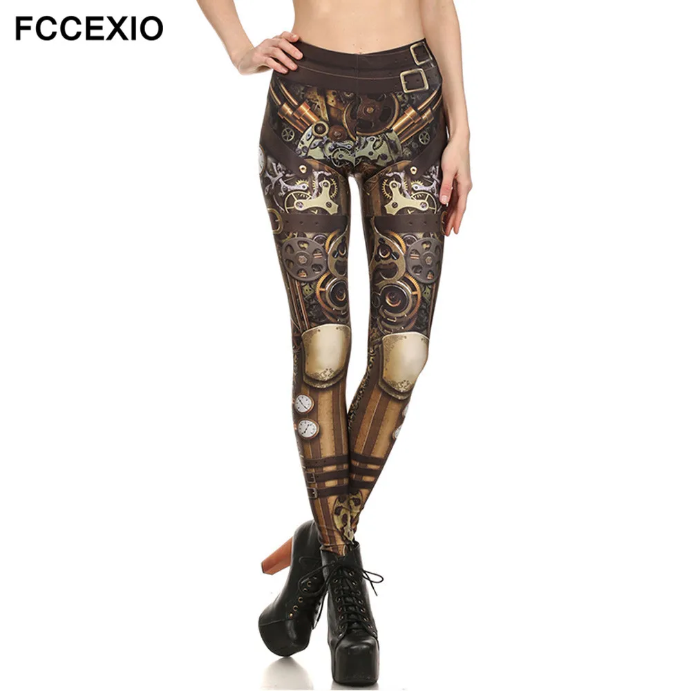 Леггинсы FCCEXIO женские весенние, модные эластичные штаны для воркаута, с 3D-принтом варварского черепа, с завышенной талией, для фитнеса