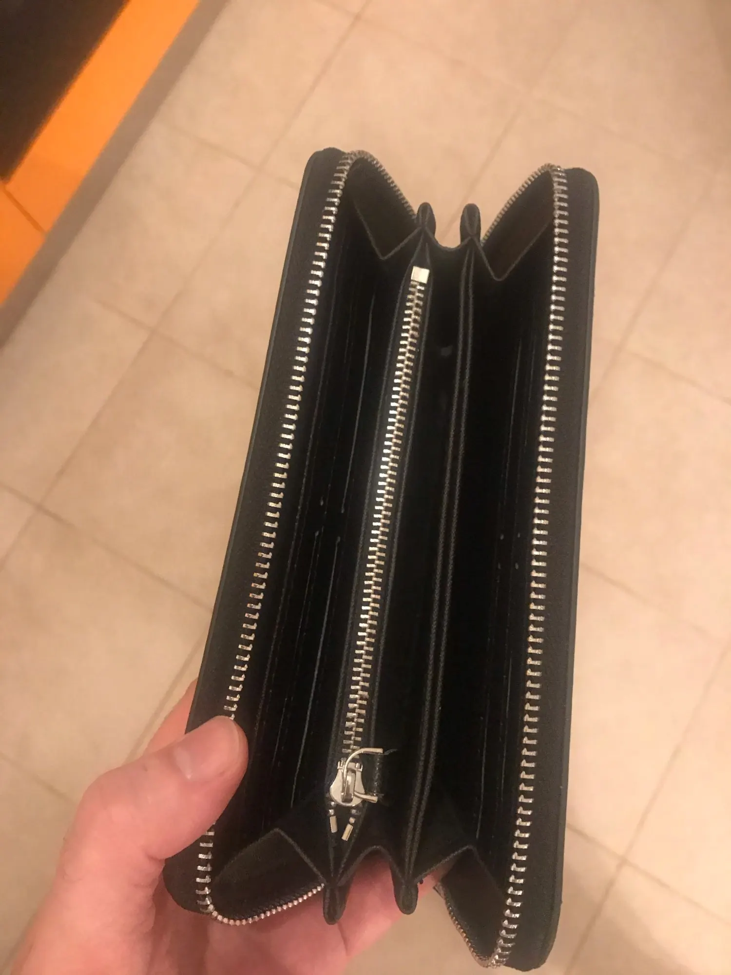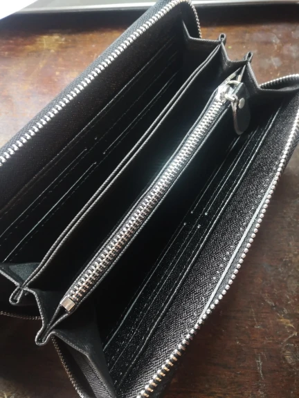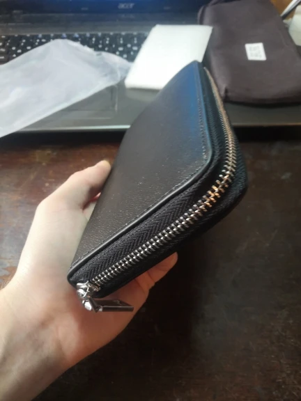Кошелёк большой, вместительный. Кожа грубовата, жестковата. Много отсеков для карточек, надеюсь молнии проработают долго.