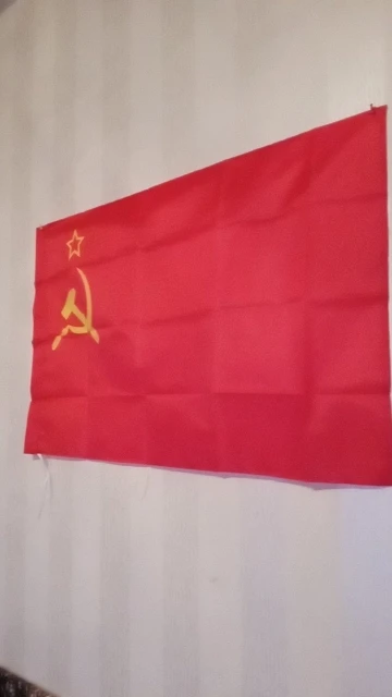 флаг очешуенный.для гаража брал. китайский братко сшил все ровно,нитки не торчат, цвета яркие.до седой Сибири шел три недели,из которых пять дней он торчал в сортировке в Красноярске,так то бы и за две недели пришел. он реально Пиздатый. кто рождён в СССР-плюсуйте.позже размещу фото на стене гаража.