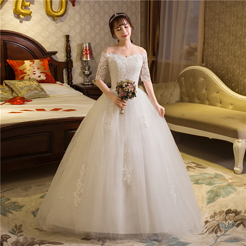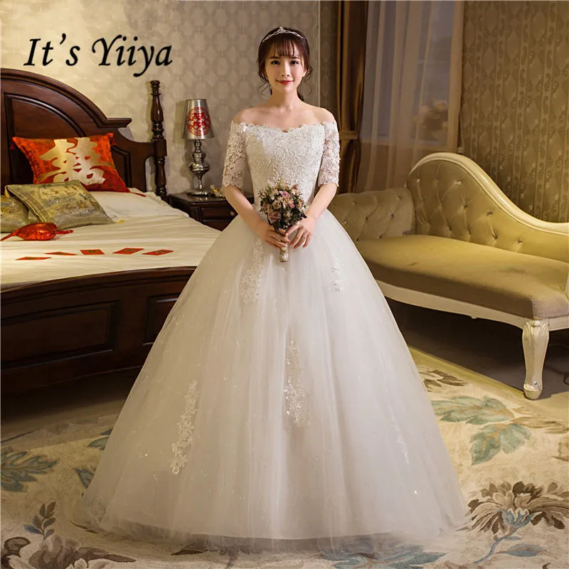 Женское свадебное платье It's yiiya, белое кружевное платье с полурукавами и вырезом лодочкой на лето 2017