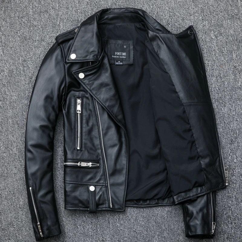 Бесплатная доставка, распродажа. Женская тонкая куртка из натуральной кожи. Модное байкерское пальто из овчины. Мягкая размера плюс кожаная одежда