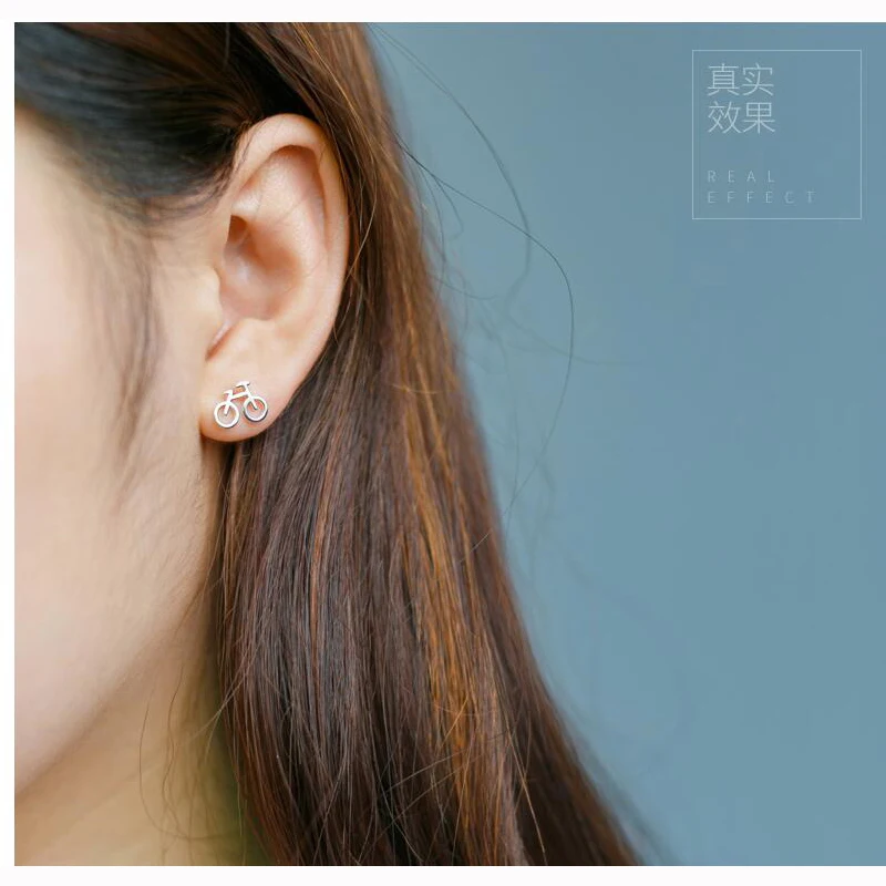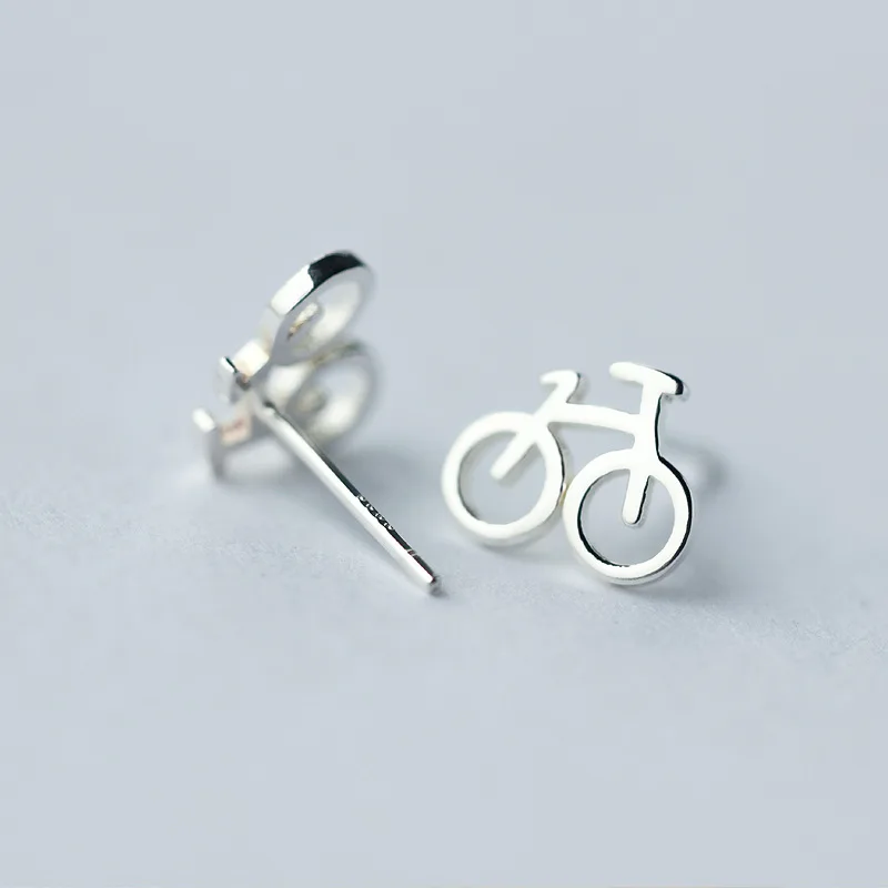 Серьги-гвоздики женские из серебра 925 пробы, мини-велосипед пробы