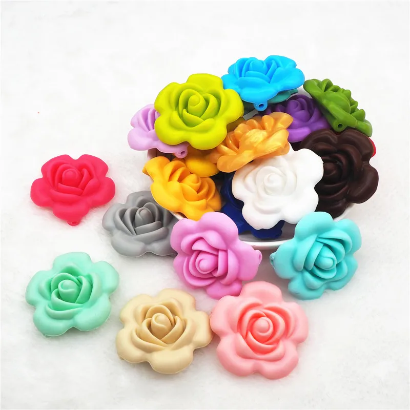 Силиконовые бусины Chenkai для прорезывания зубов, подвеска в виде цветка розы, не содержит Бисфенол А, сделай сам, Детская пустышка, пустышка для прорезывания зубов, жевательная игрушка, 50 шт.