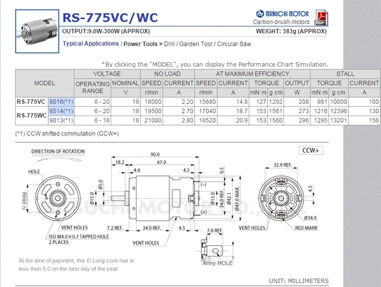 Новый оригинальный двигатель Marlboro до 775WC, высокая мощность, высокая скорость, большой крутящий момент, мощный мотор 775, используемый в электроинструментах, мощность более 200 Вт (даже более 300 Вт), блокирующий ток выше 130 А, и блокирующий крутящий момент выше 12 кг/см, Это классический электродвигатель 775. Совершенно новый оригинальный двигатель, часть 40 шт., внешняя коробка обычная, но Marlboro к упаковке двигателя хорошая, поэтому большинство двигателя красиво.