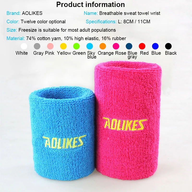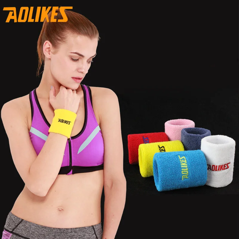 Повязка на запястье AOLIKES, хлопковая, впитывающая пот, для занятий спортом на открытом воздухе, 12 цветов, 1 шт.