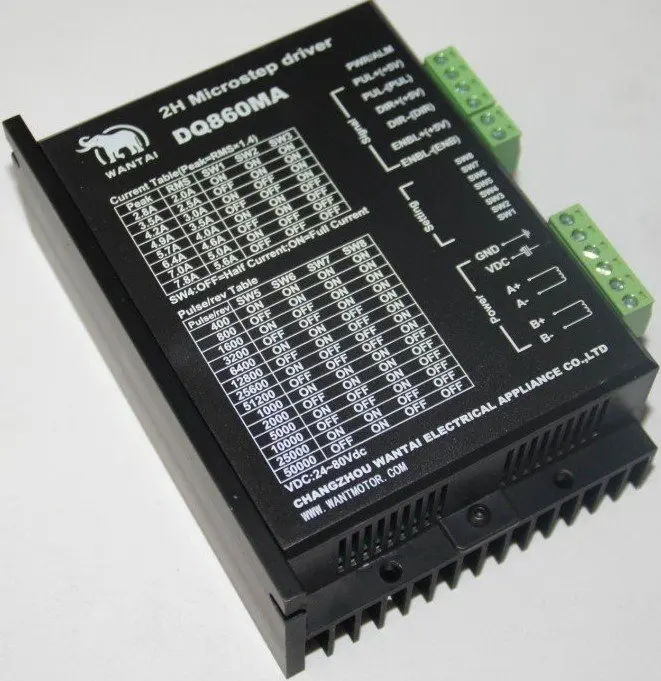 DQ860MA-экономичный микрошаговый драйвер на основе запатентованной технологии мотора Wantai. Подходит для вождения 2-фазных 4-фазных гибридных шаговых двигателей. Используя усовершенствованную технику покупок постоянного тока, он может выдавать больше скорости и крутящего момента от того же двигателя по сравнению с традиционными драйверами, такими как L/R драйверы. Благодаря 3-х уровневой технологии контроля тока катушки течения хорошо контролируются и имеют относительно небольшую пульсацию тока, поэтому достигается меньшее нагревание двигателя.