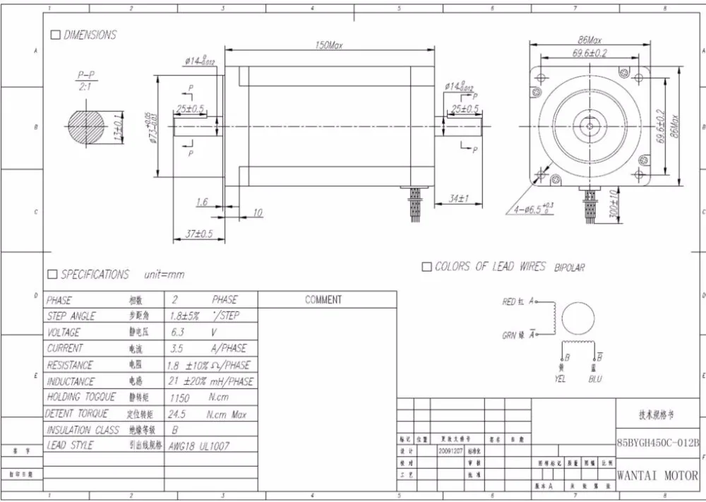 Модель: (85BYGH450C-012B) 3.5A , 1600oz-in (11.2NM) ,4 провода,