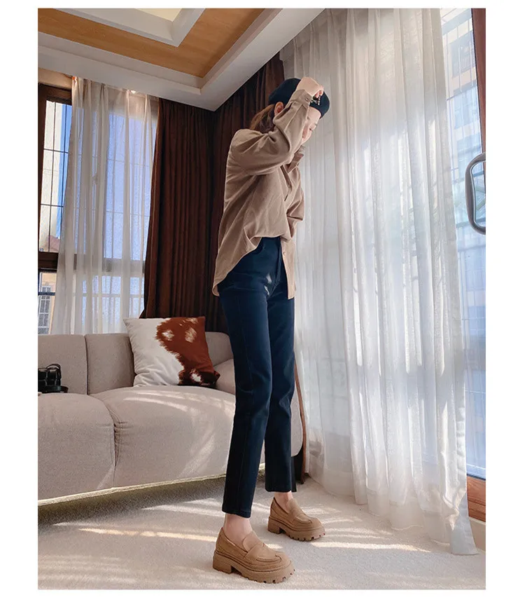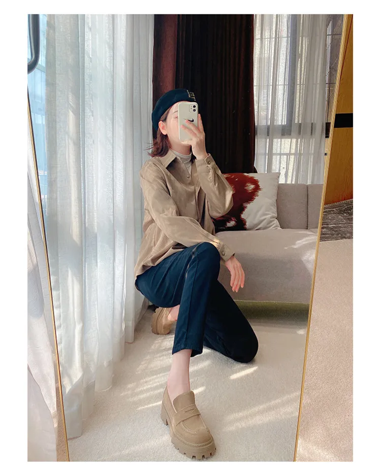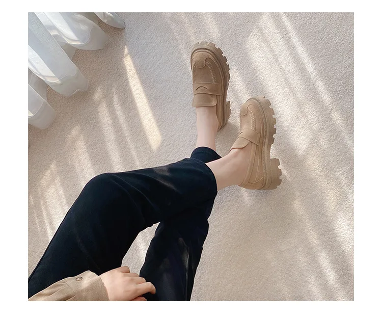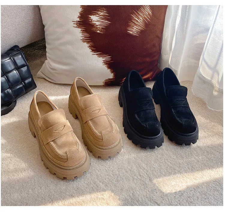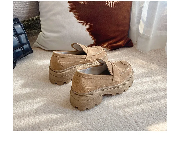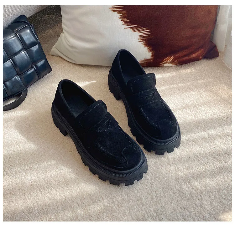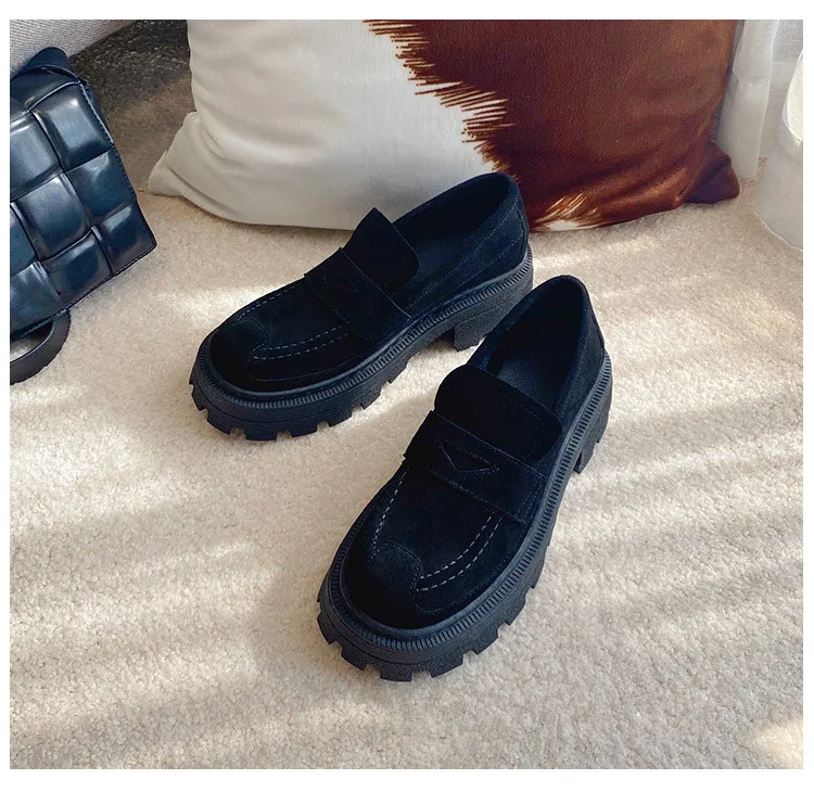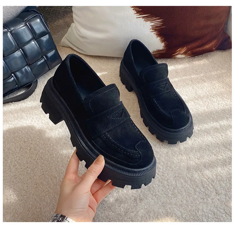 Женские туфли в британском стиле ретро из спилка без застежек на плоской подошве износостойкие удобные женские лоферы с открытым носком