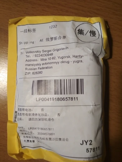 Страна: RU Plug Type: EU Доставка: Cainiao Expedited Economy 23.12.2020