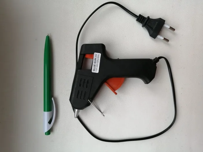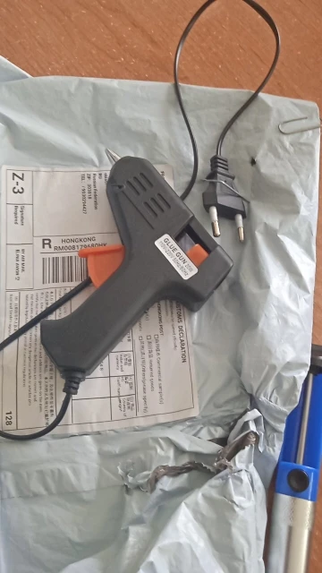 Маленький, компактный, удобный пистолет для клея. Работает. До России пришёл в сборной посылке за три недели. Упакован был в пупырчитый пакет. Пришёл целый. К продавцу претензий нет)