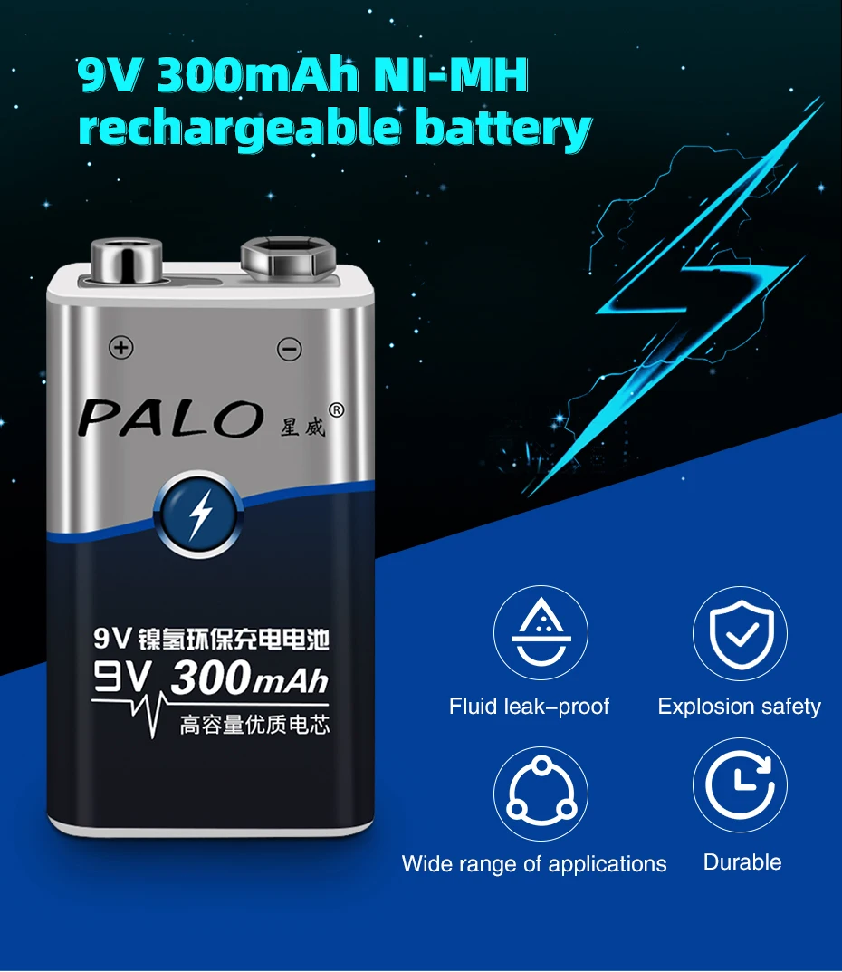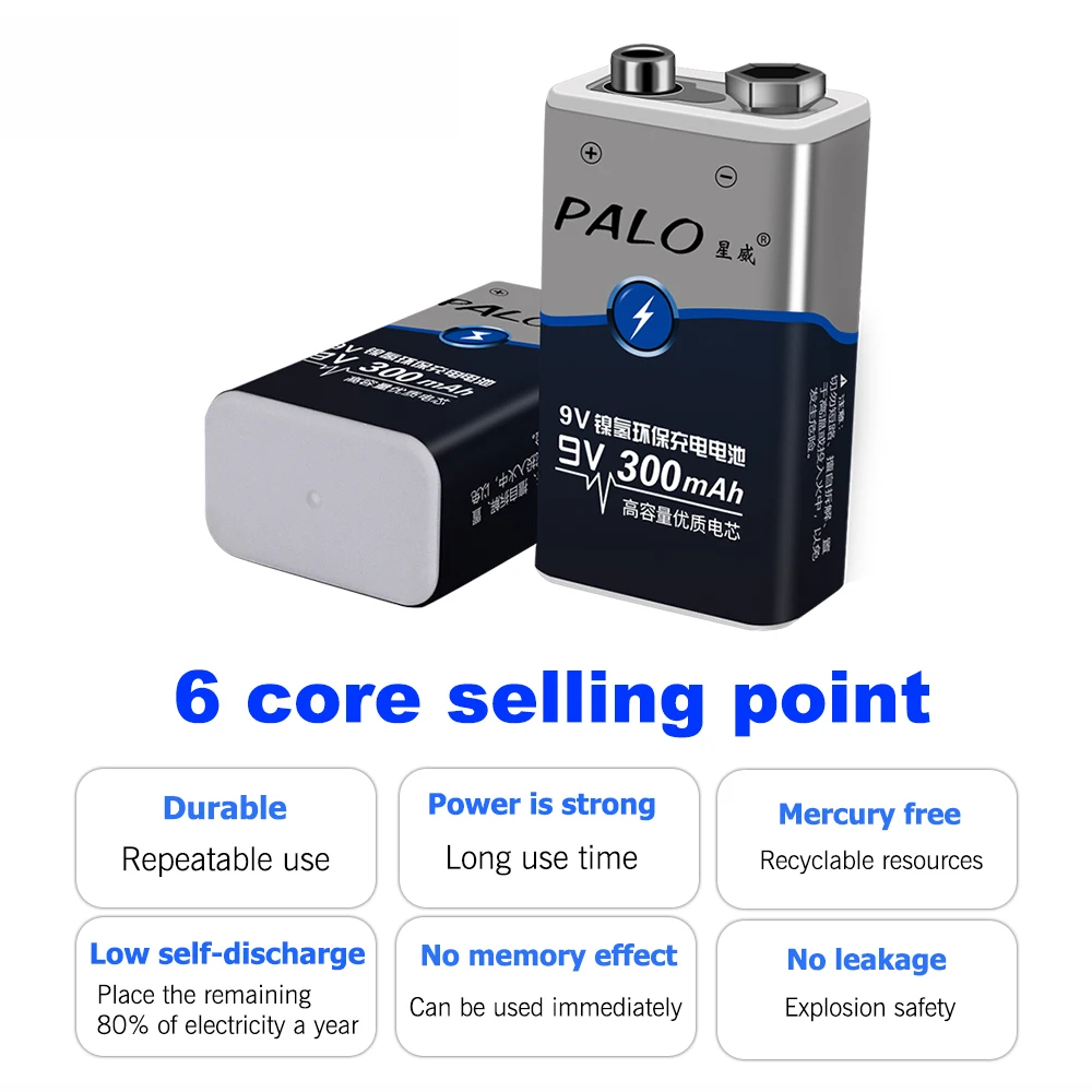 2x9V 300mah перезаряжаемые батареи
