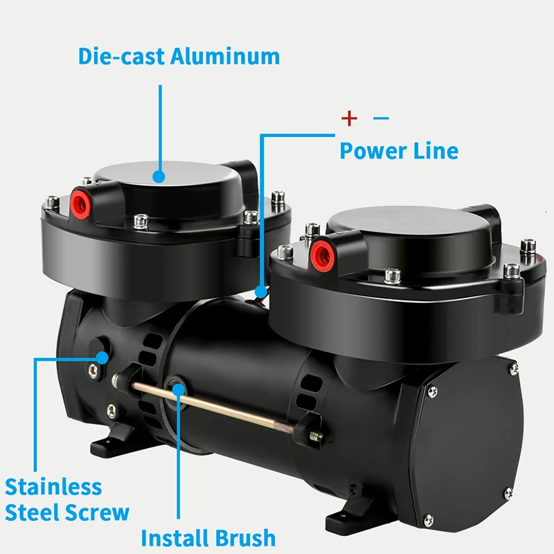 Электрический мембранный вакуумный насос GZ70B-12, 12 В24 В, расход 136LPM, 160 Вт, двухцилиндровый компрессорный насос