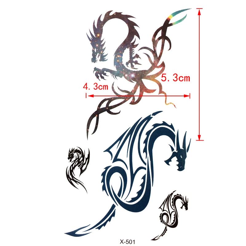 Временная Татуировка Flying Dragon, водонепроницаемая татуировка для мужчин, временная татуировка для животных, Харадзюку, хна, стикер для боди-арта