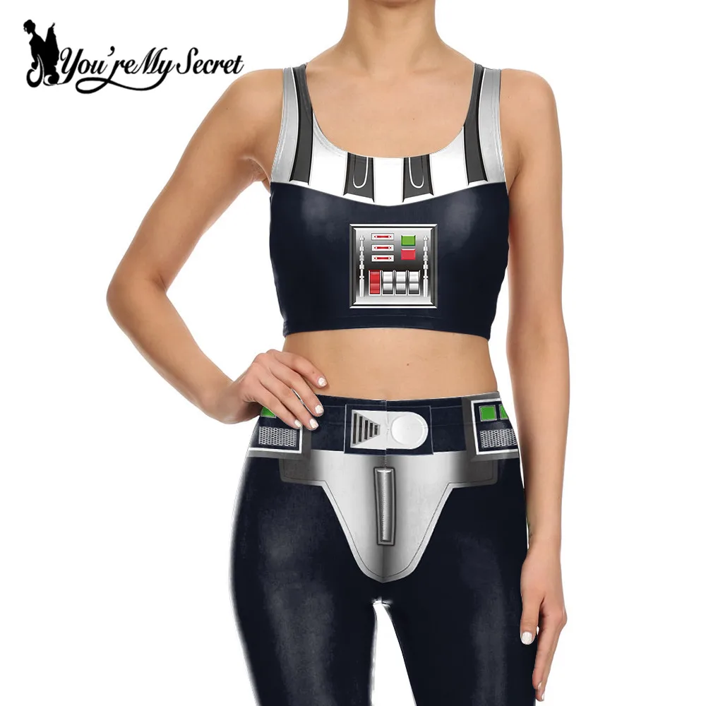 Ты мой секрет Модные косплей комплекты из двух предметов, принт со звездой, комиксов Леггинсы с принтом робот для женщин фитнес укороченный топ тонкий тренировки наряды