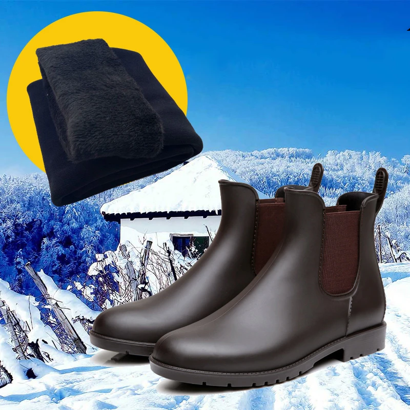Ботинки Челси мужские резиновые сапоги низкие резиновые сапоги теплые мужские низкие ботинки для воды мужские скользящие галоши ботинки для рыбалки резиновые сапоги