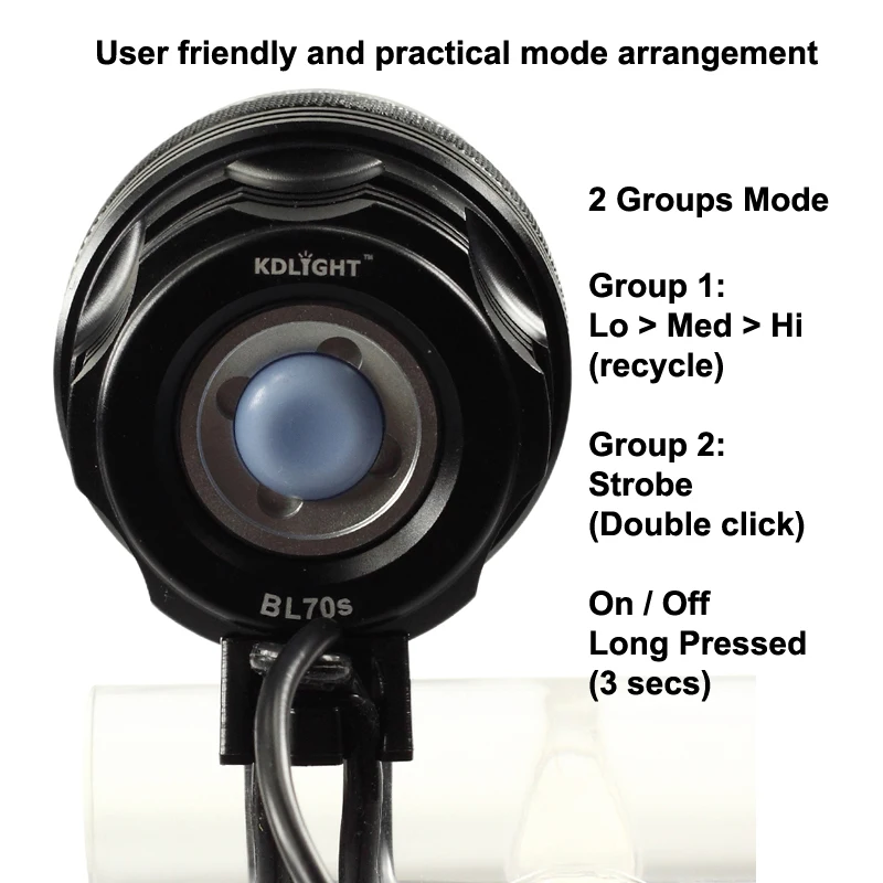 Велосипедный фонарь KDLITKER BL70s Cree XHP70.2 белыйнейтральный белыйтеплый белый, 3000 люменов, 4 режима, черный (1 шт.)