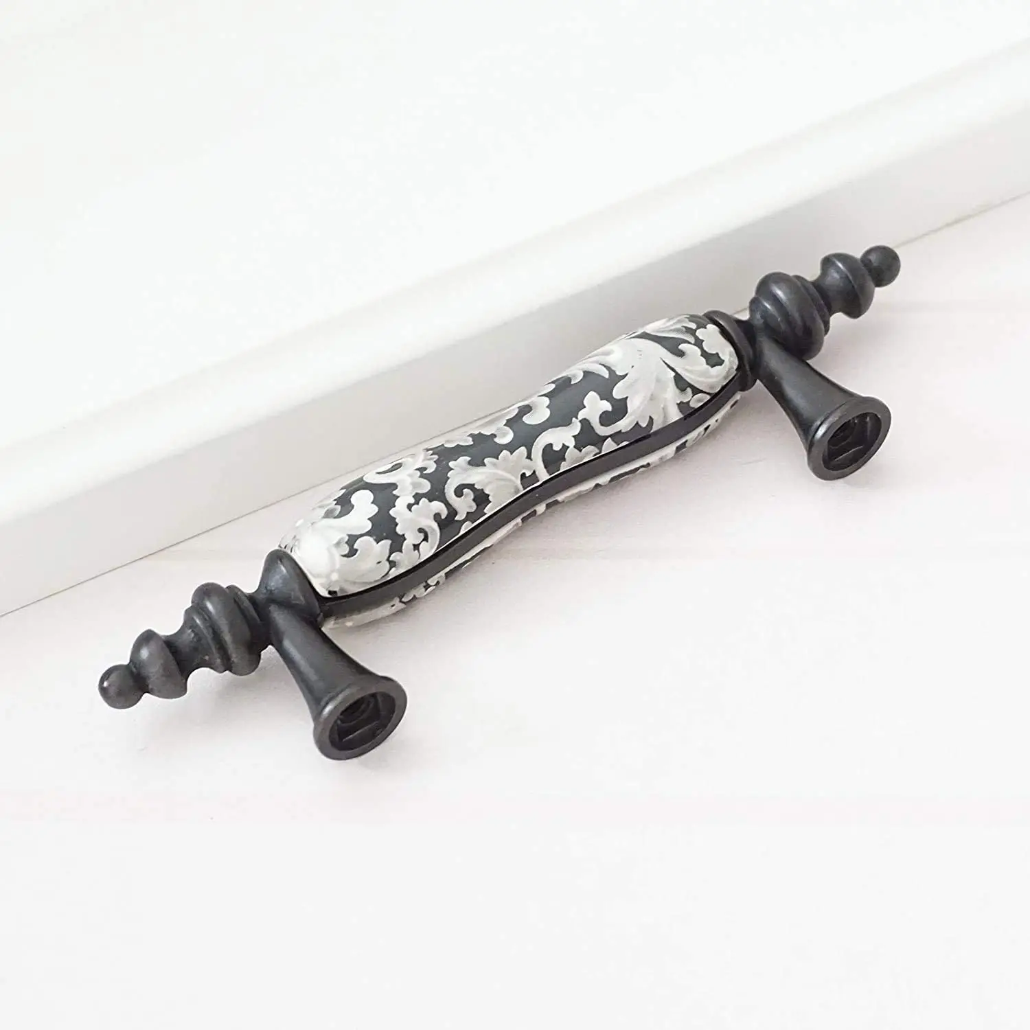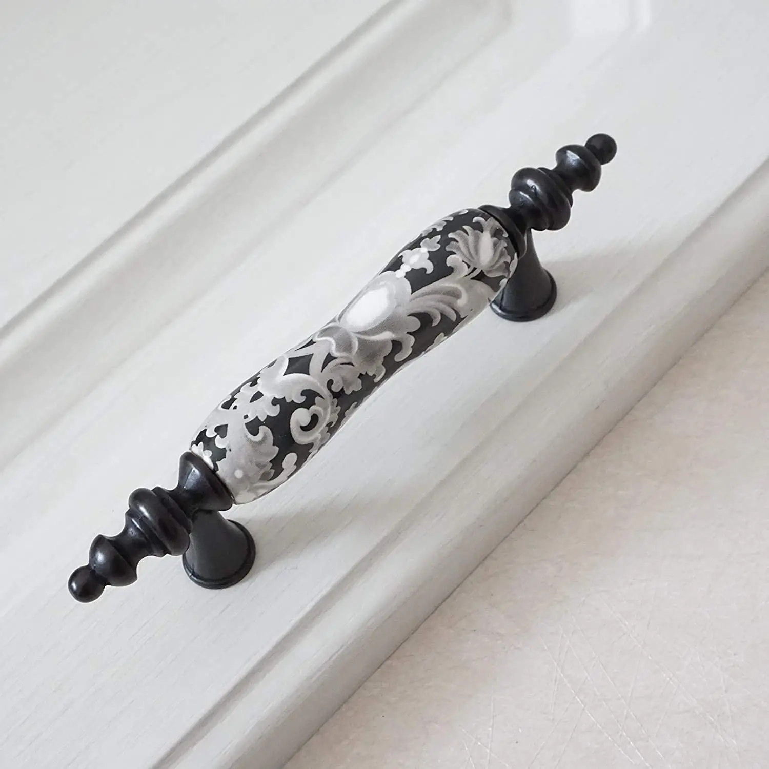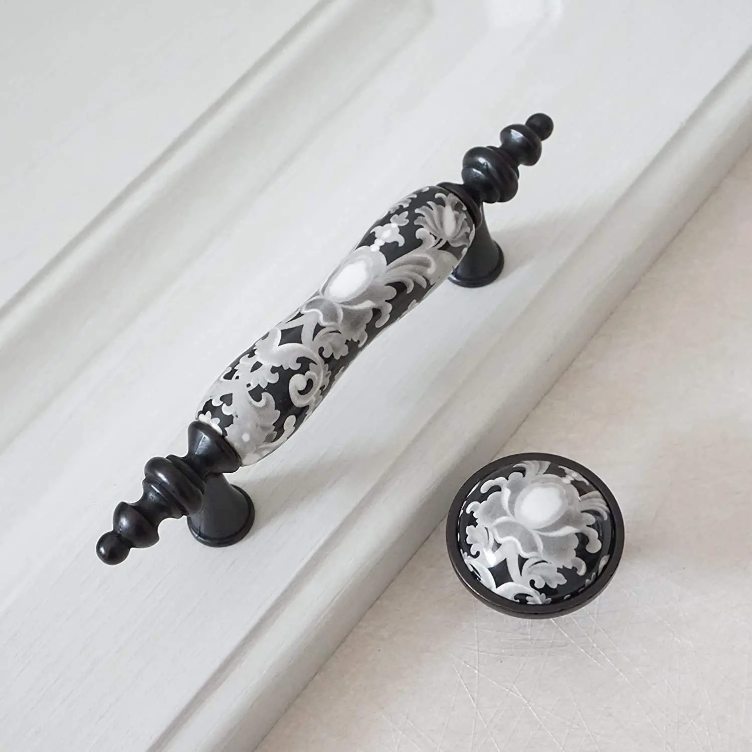 Керамическая ручка в виде черного цветка, бронзовая керамическая ручка, дверные ручки, выдвижные ручки для ящиков, ручки для кухонного шкафа, мебельные украшения