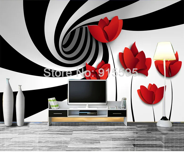 Настенные обои на заказ, черно-белые полосатые цветы, Современная 3D Абстрактная Геометрия, космическая настенная живопись, обои для гостиной