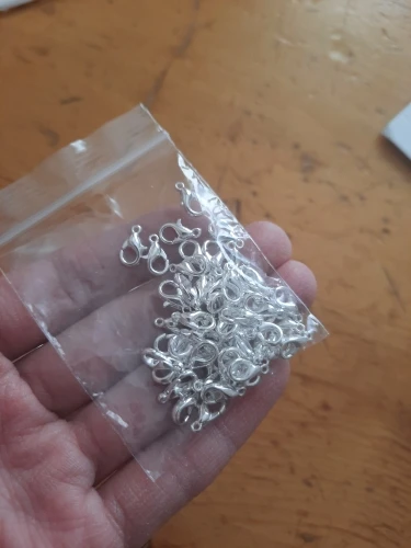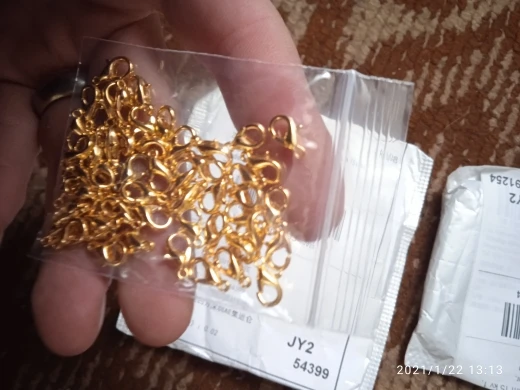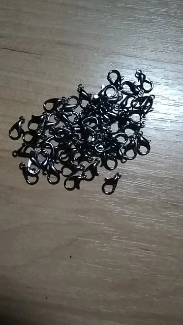 Карабинчики были получены вчера 22 января. Пришли 20 января а дошли моментально быстро за 11 дней до волгогр. обл. совмещённые вместе с другими 3 посылками-цепями разного размера. Отправили тоже очень быстро. Сделал из цепи браслет 3 штуки в звено цепи вставил карабинчик один и потом на руке застегнул. Очень круто получилось. Но в описании здесь написано что их там 50 шт. но я посчитал разложил по 5 шт. Ну разложил по пять т.е. пять тут пять и получилось 10 кучек карабинчиков по 5 шт. Это получается 50 шт. но плюс ещё 3 штуки у меня на руке одеты уже были. В итоге видимо продавец просчитался 53 или 54 шт всего я посчитал. Но они супер как раз по цвету моих цепей подходят. Рекомендую покупать.
