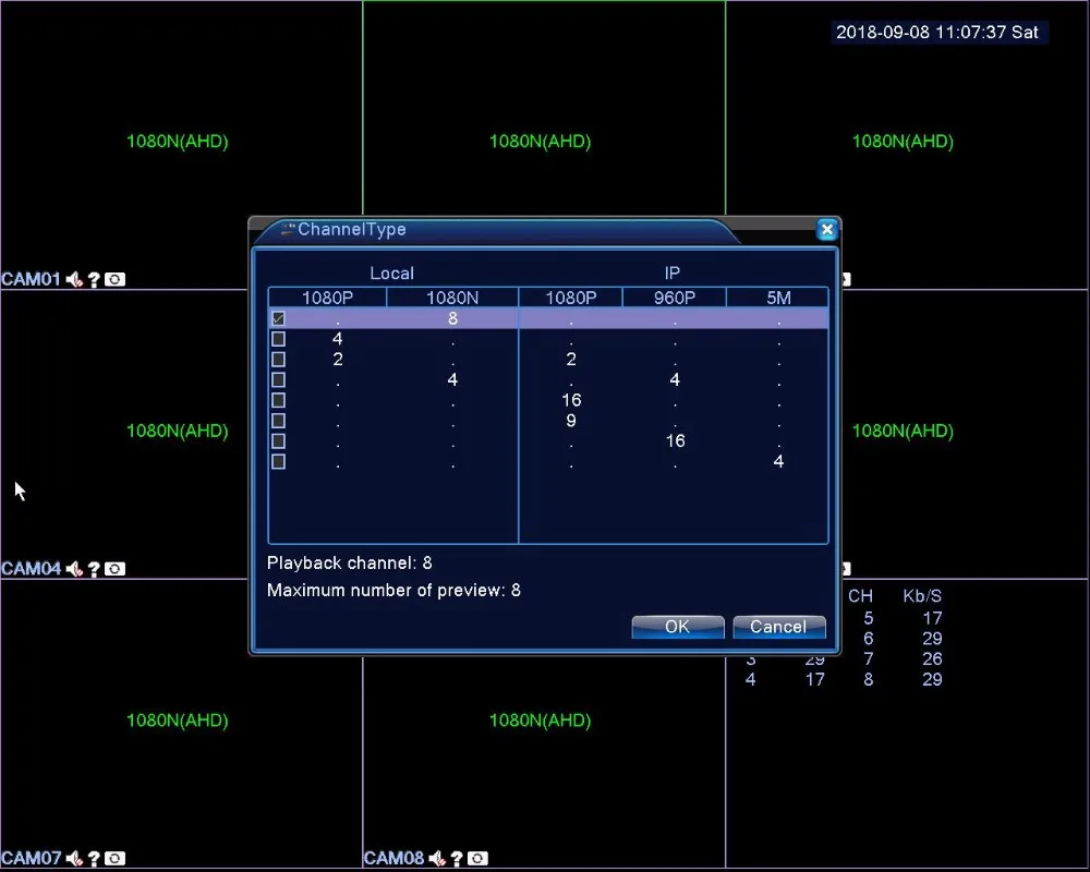 Смешанный: 4 * AHDNH + 4*960P (сеть);