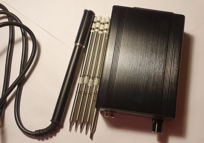 Все отлично, дошло за неделю, проблем никаких. Провод паяльника мягкий, есть разъем внешнего питания - станцию можно включать в полевых условиях. Вначале температура прыгала минут 5, потом всё стабилизировалось и отлично держится. PID регулятор немного заторможенный, 100% мощности никогда в жало не вливает, максимум 90. Управление интуитивное.