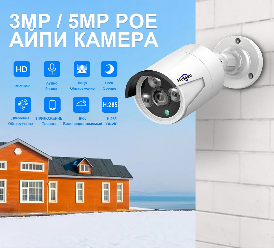 Hiseeu 5MP 3MP аудио IP камера наблюдения безопасности POE H.265 наружная водонепроницаемая IP66 CCTV камера P2P видео дом для POE NVR