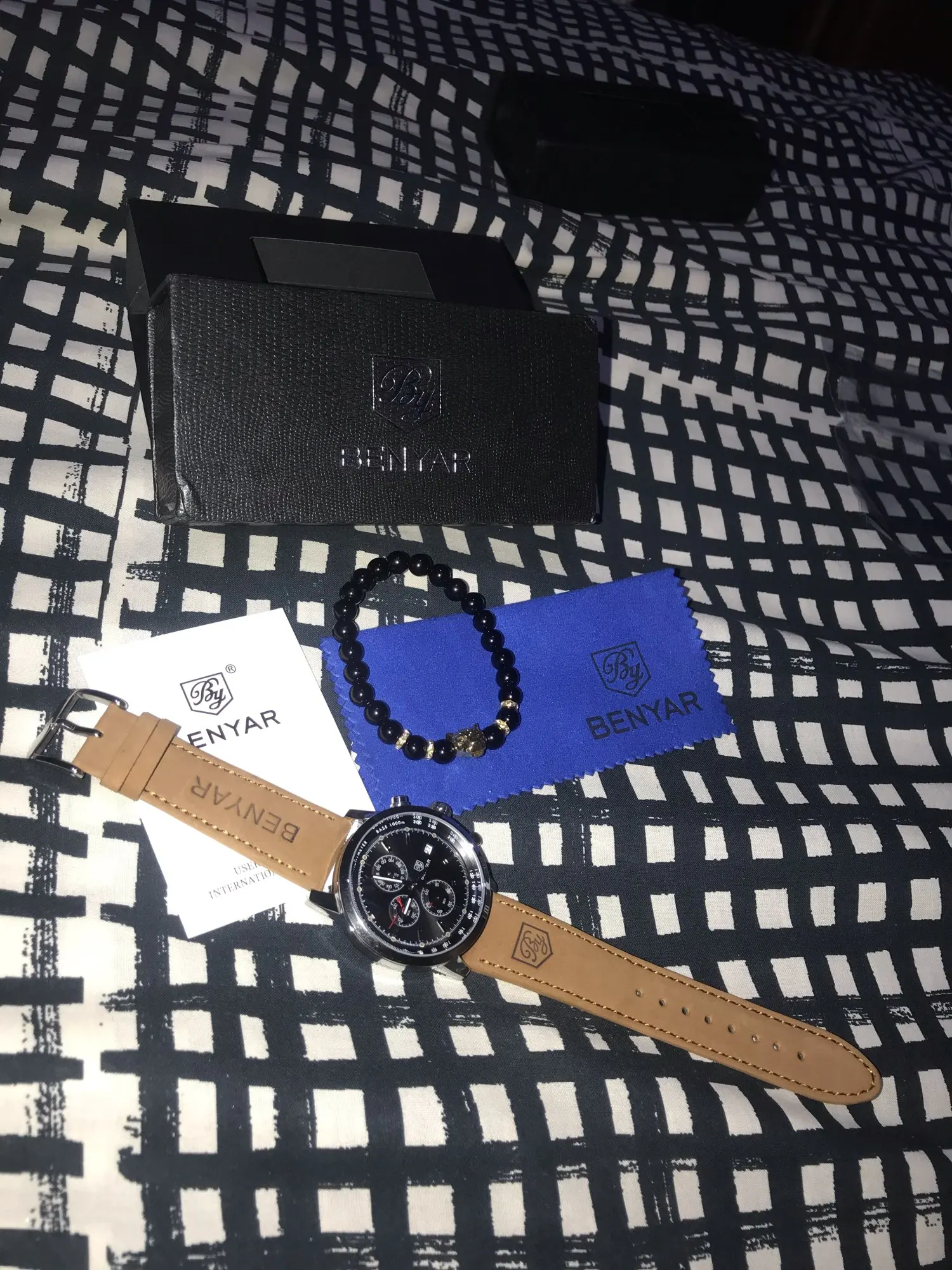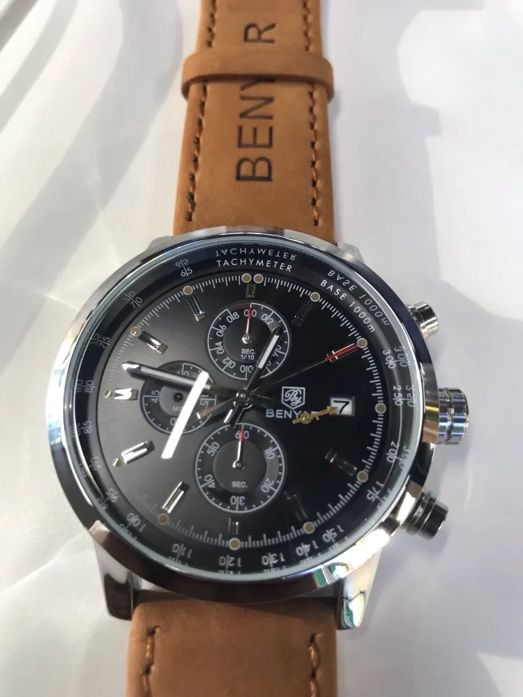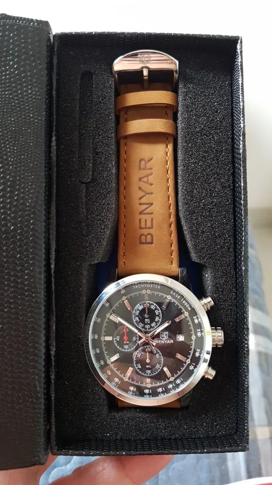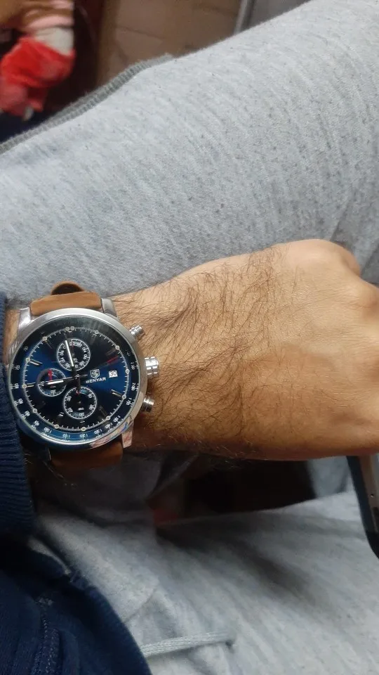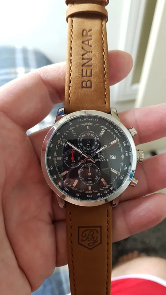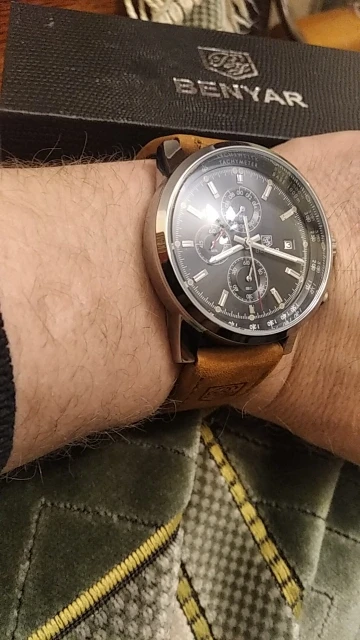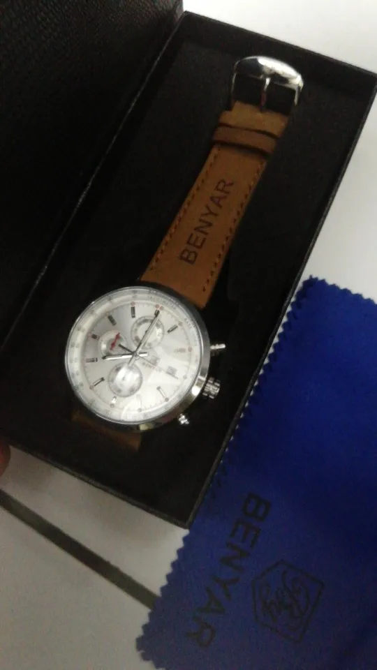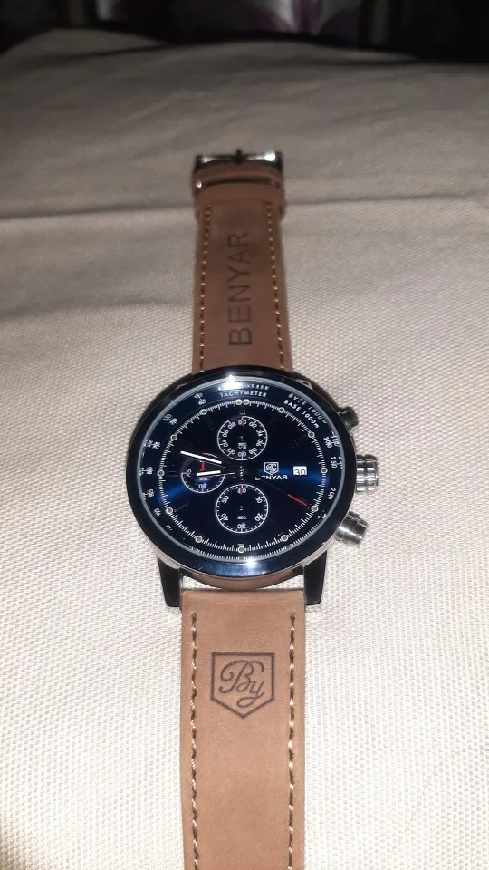 Неплохо смотрятся на руке, но наверное стоило заказать с белым циферблатом, на мой взгляд серебряные стрелки на синем фоне не очень удобно - в темное время всё сливается. За исключением этого всё остальное отлично. Хронограф (секундомер) работает, до нуля сбрасывает. Ремешок несколько жестковат, но я думаю разносится, будет помягче. Стекло слегка выпуклое (посмотрим в будущем как поцарапается). Доставка до Иркутска чуть больше двух недель. Продавца рекомендую.