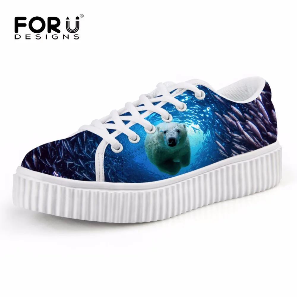 Женские туфли на плоской платформе с принтом дельфинов FORUDESIGNS