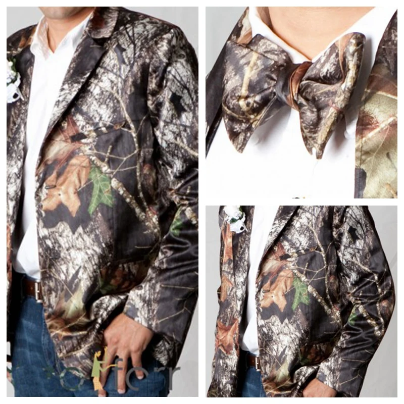 Камуфляжный смокинги с бантом на заказ, куртка для жениха с длинным рукавом, камуфляжный костюм из сатина и натурального дерева, камуфляжная верхняя одежда, куртка для жениха, 2019