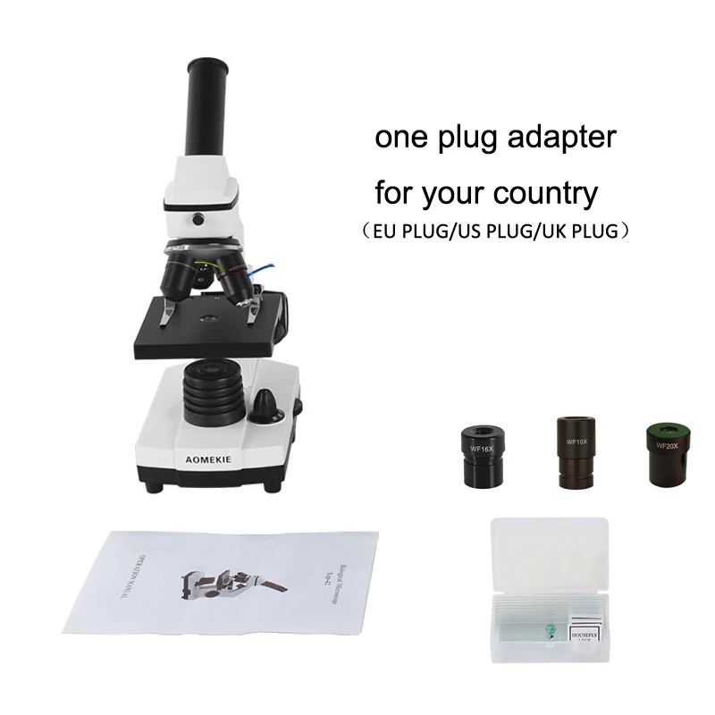 Биологический микроскоп AOMEKIE, 40-800X, со светодиодной подсветкой вверхвниз, образовательный монокулярный микроскоп, детский подарок со слайдами, 3 окуляра