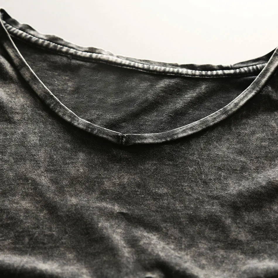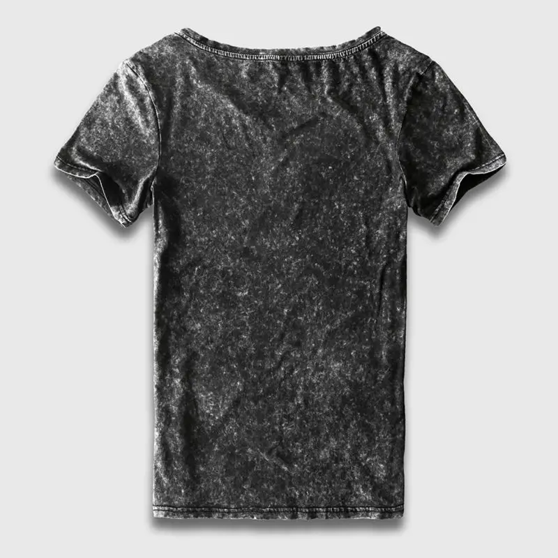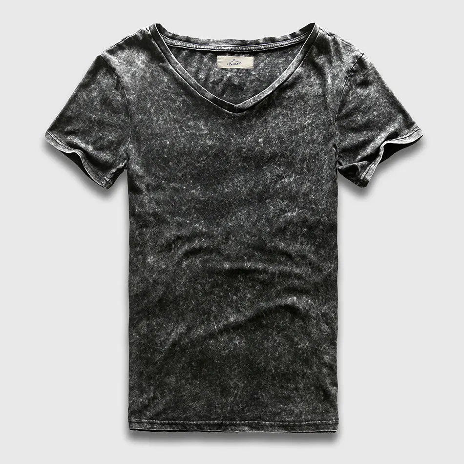 Футболка Zecmos Мужская винтажная, модная Тяжелая приталенная, с V-образным вырезом, с эффектом потертости, с коротким рукавом, китайские размеры