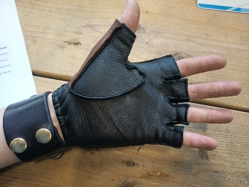 Перчатки размером от 20 до 21 см немного больше. Коричневый цвет темнее, чем на изображении. С эластичной резинкой на запястье кнопка в порядке, плотно держит. Кожа очень мягкая. Все швы снаружи.