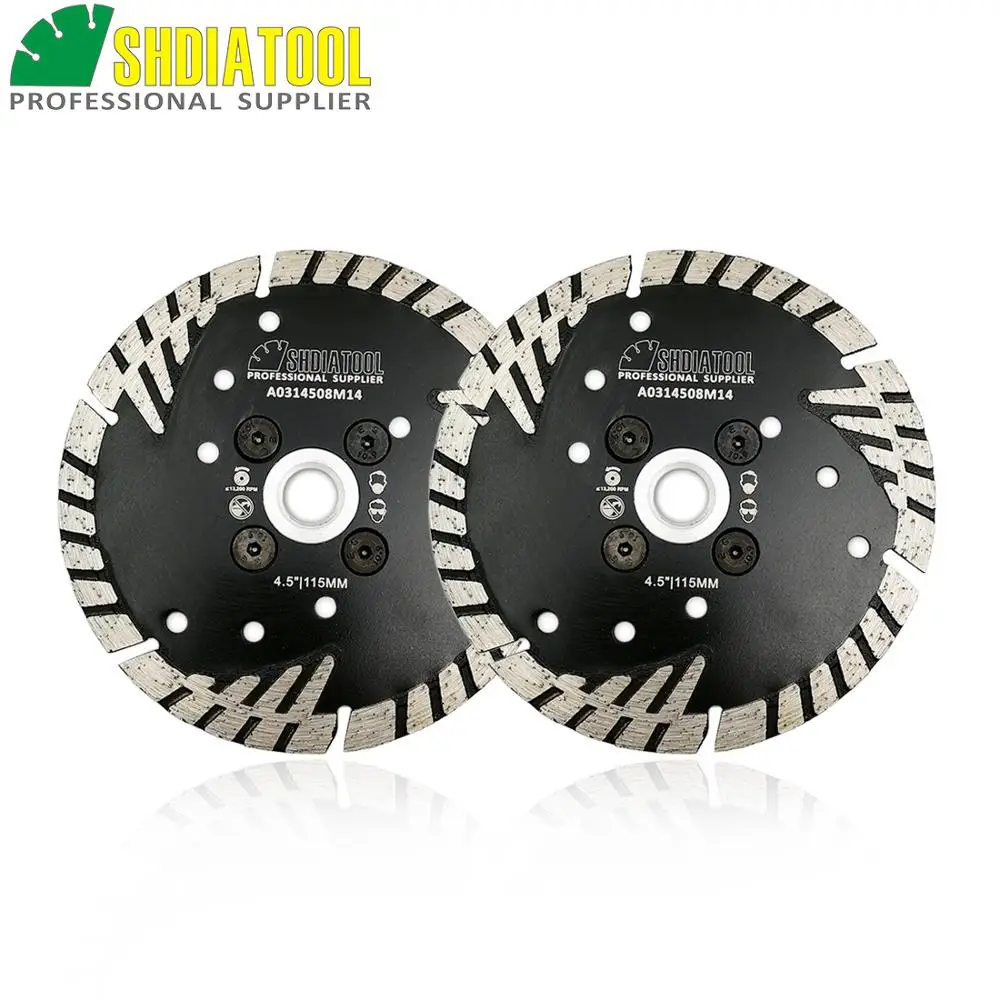 SHDIATOOL 2 шт M14 фланец 4,5 "115 мм Алмазное турбо-лезвие треугольная Защита зубов гранит мрамор бетон пилы режущий диск