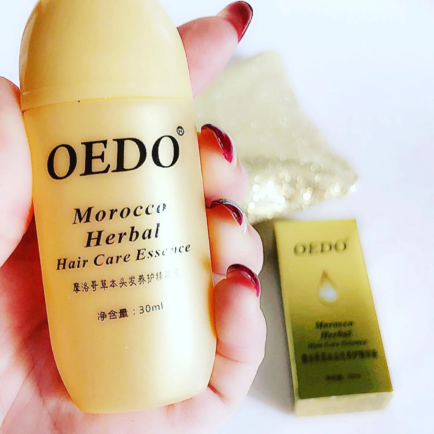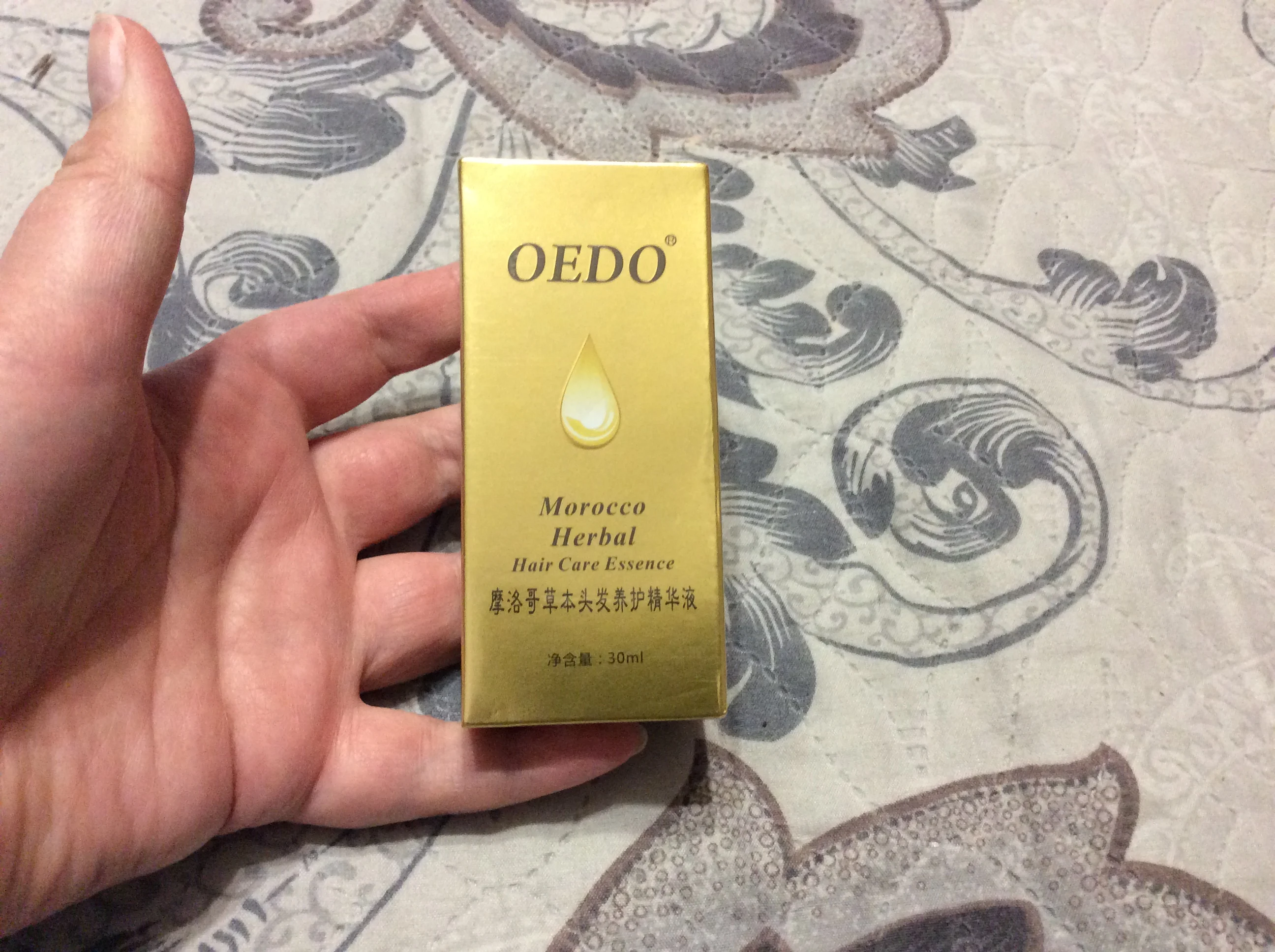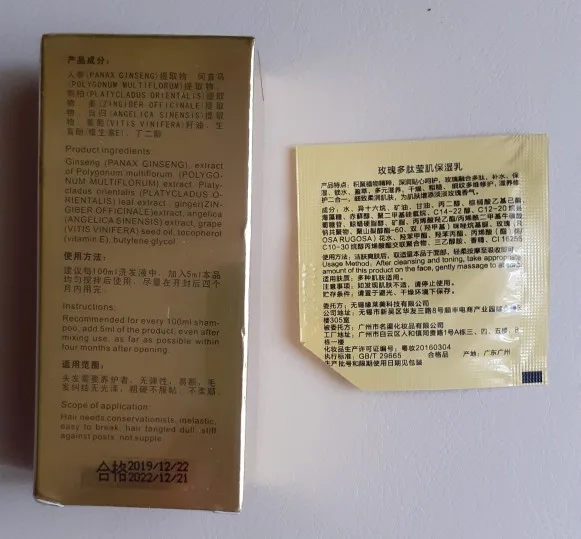 Средство пришло в хорошо упакованой коробочке,срок годности указан.Само масло в пластмассовой бутылочке,объем 30мл. Инструкция на китайском и английском языке. Хороший состав.В использование понравилось, добавляю по несколько капель в шампунь.Волосы мягкие,шелковистые легко рассчесывать. Буду заказывать ещё,трек отслеживался.Пришло за 2 недели.Продавца рекомендую.