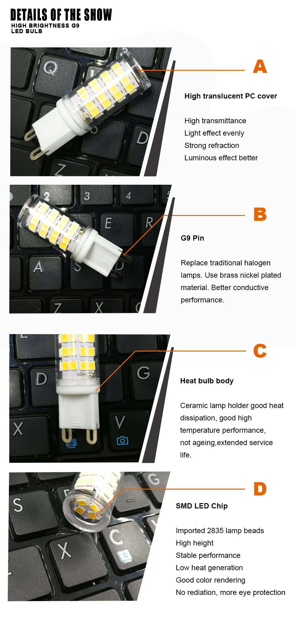 Светодиодная лампочка G9 SMD2835 для люстры, сменный галогенсветильник ильник для ПК AC85-265V, 5 Вт, керамическая лампочка