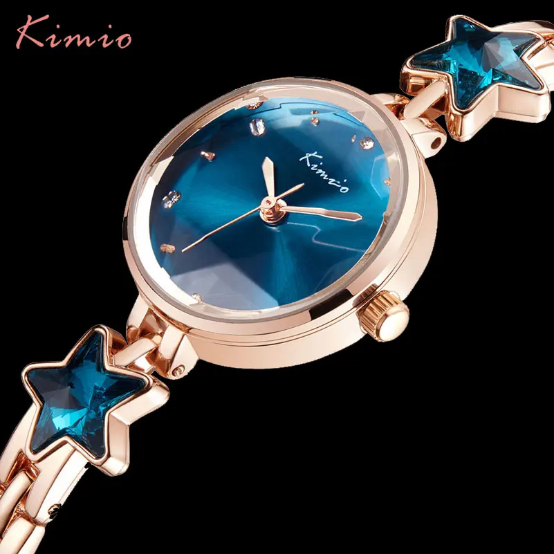 Женские часы от бренда KIMIO, кварцевые часы под платье, золотые женские часы с браслетом, роскошные женские наручные часы 2018, популярные подарочные часы для девушек