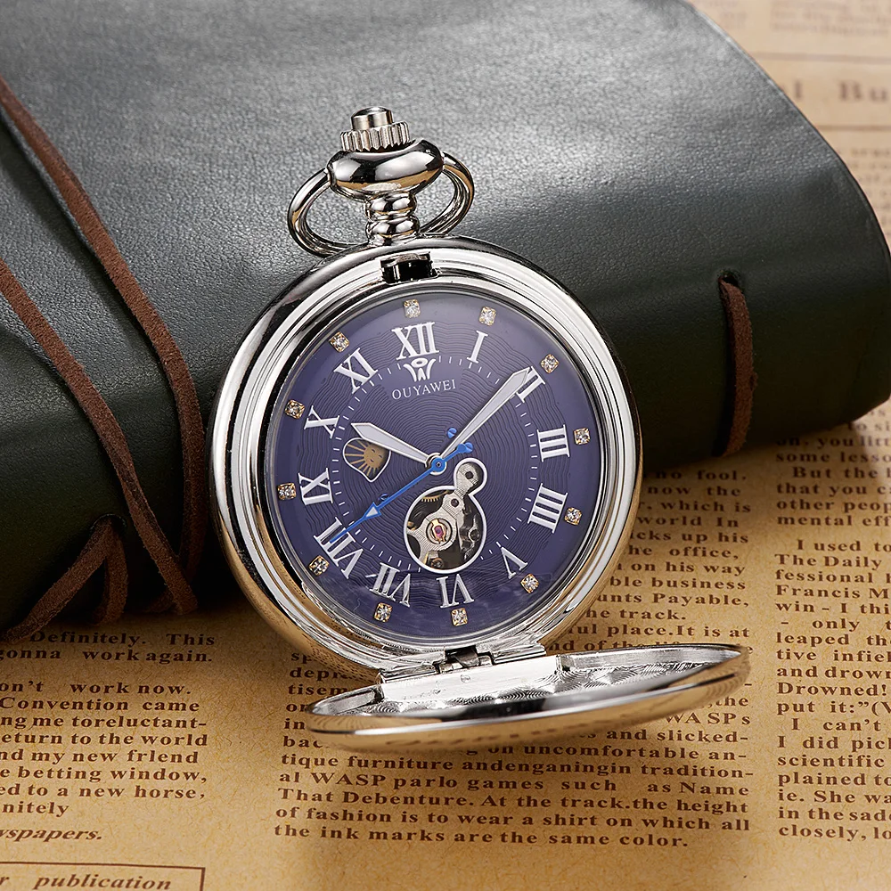 Часы-Скелетон мужские карманные из нержавеющей стали, серебристый циферблат