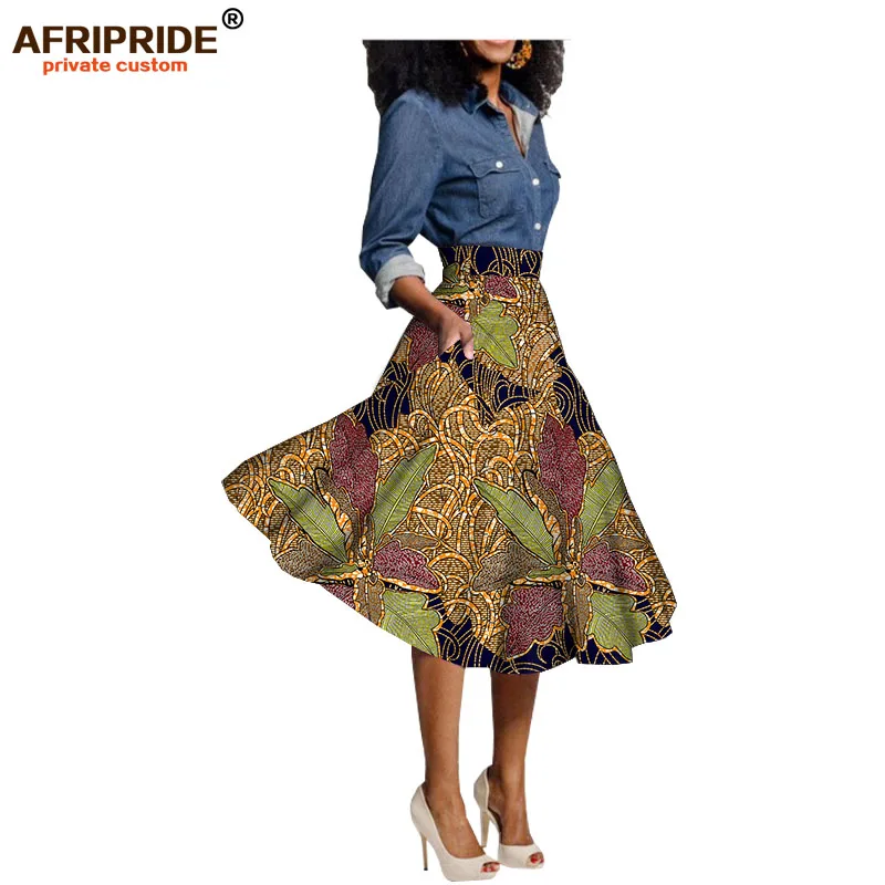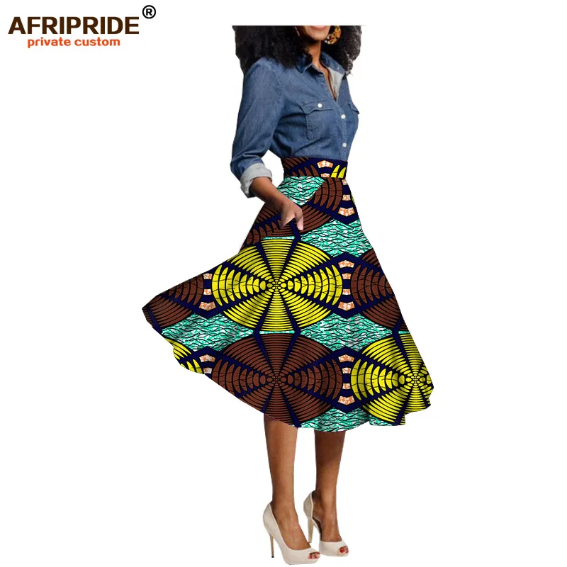 Африканский принт skrits для женщин, одежда до колена, повседневная юбка из 100% чистого хлопка, блестящая одежда AFRIPRIDE A722703