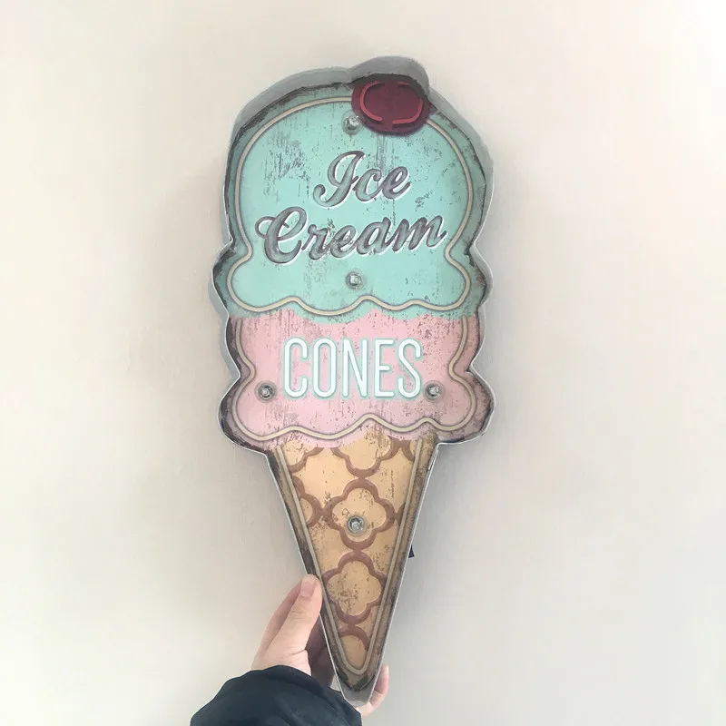 Мороженое шишки светодиодный светильник неоновая вывеска винтажный домашний Настенный декор металлические вывески рекламные вывески для бара торта хлебобулочных магазинов