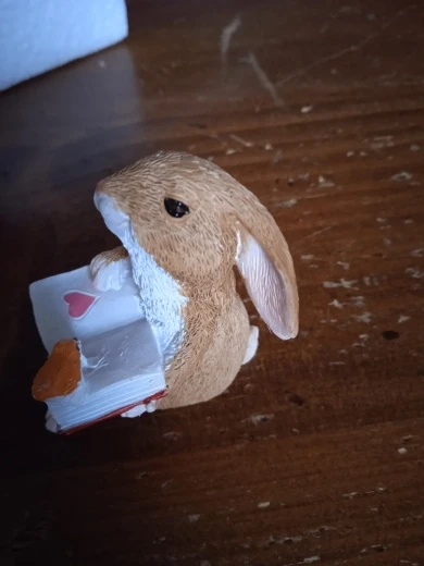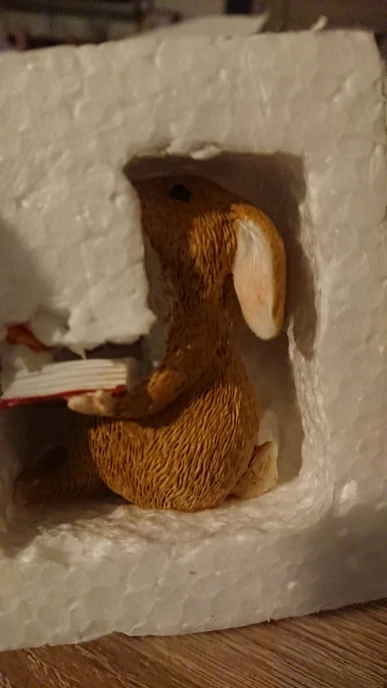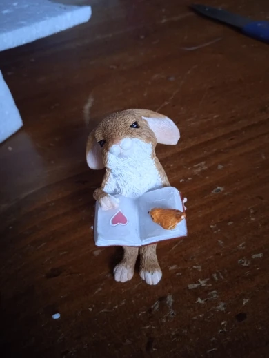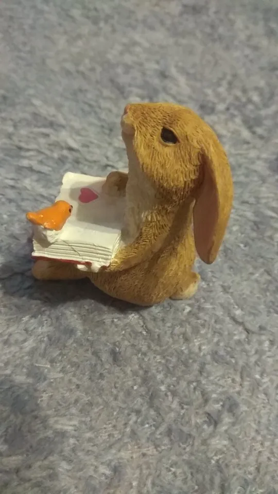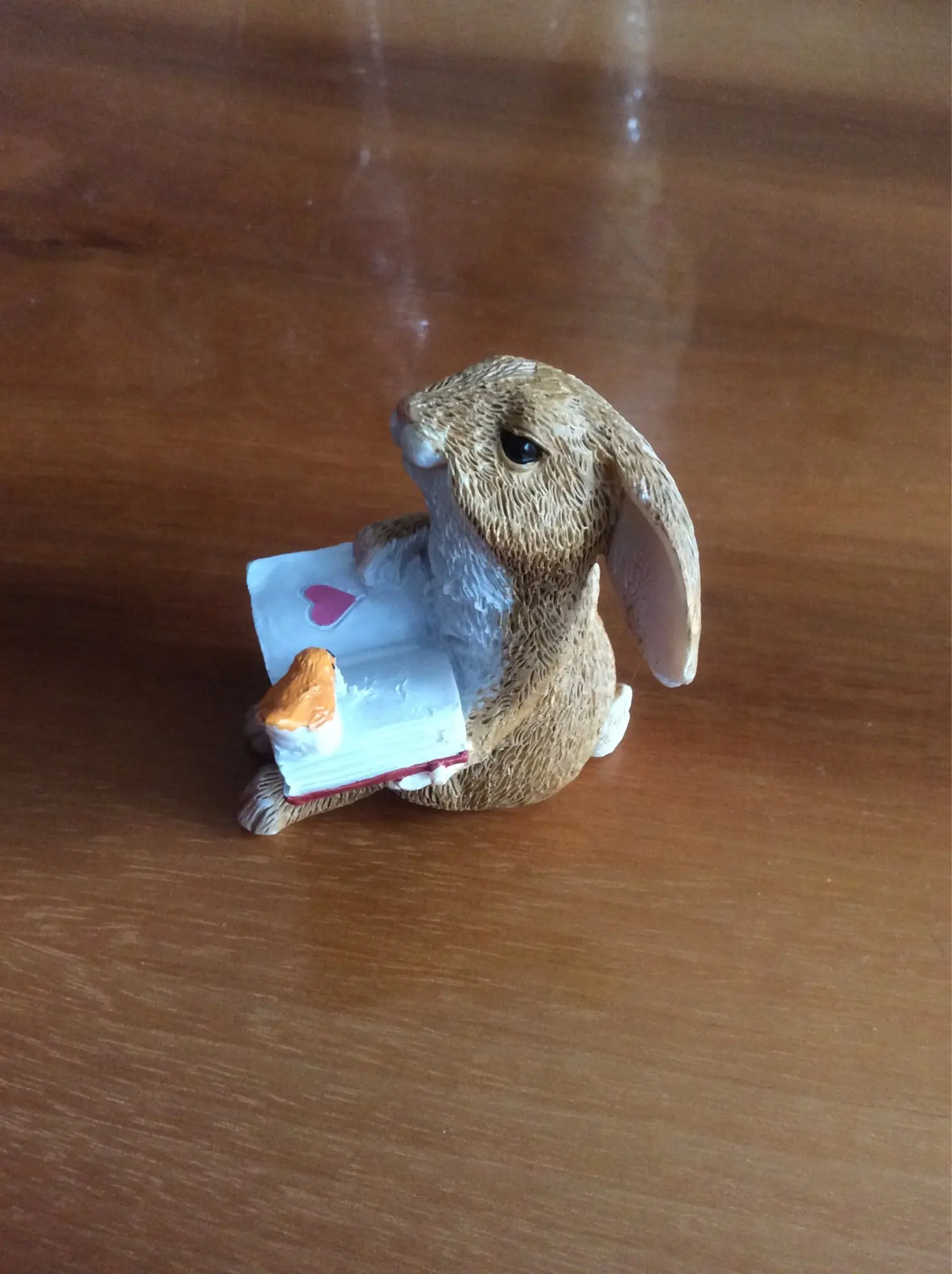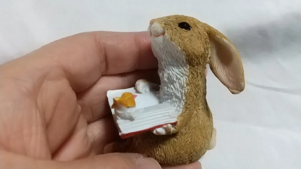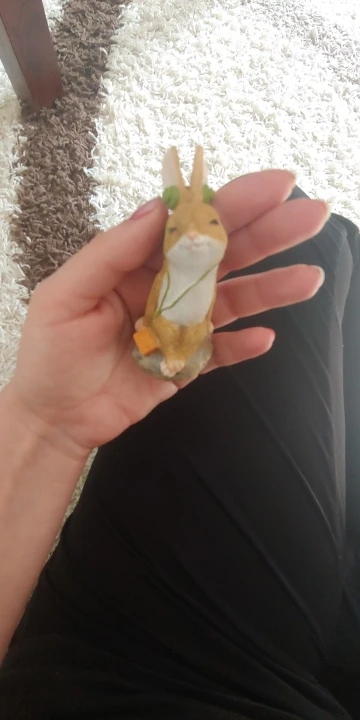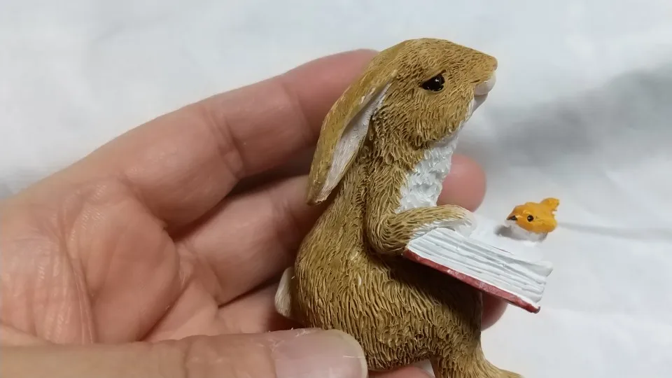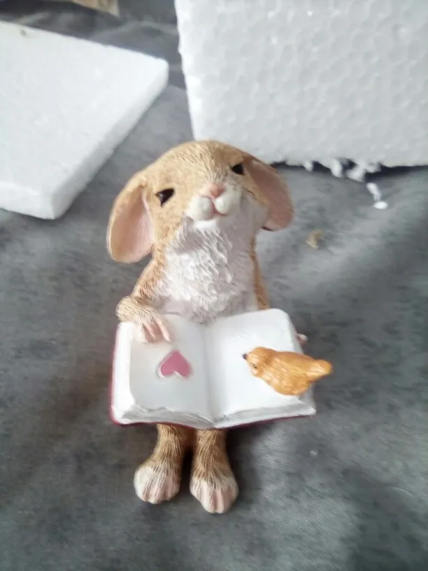 Я люблю эту фигурку кролика с книгой, смоляной. Хорошо окрашенные. Красивое украшение. Картинка такая же. Она скоро прибыла и хорошо защищена. Спасибо, мистер продавец.