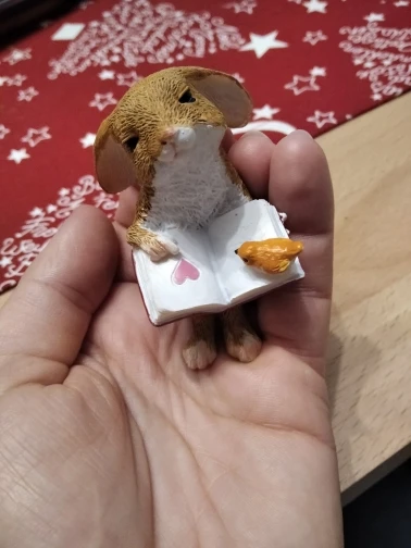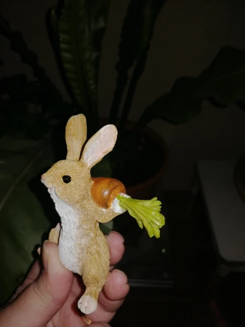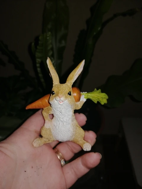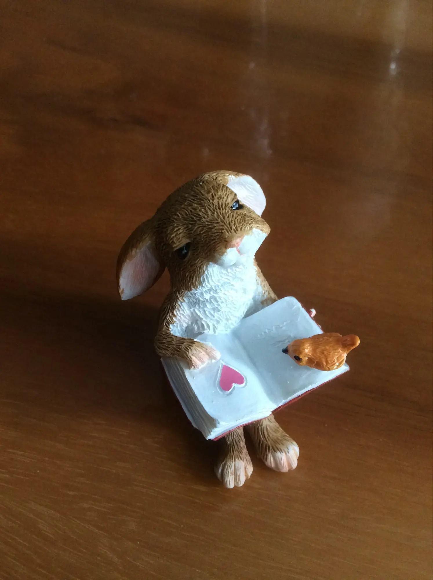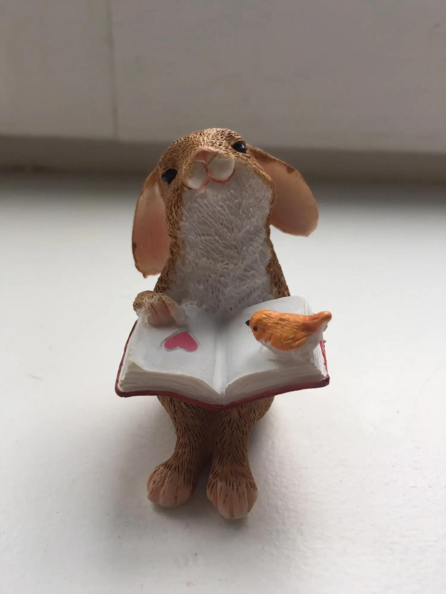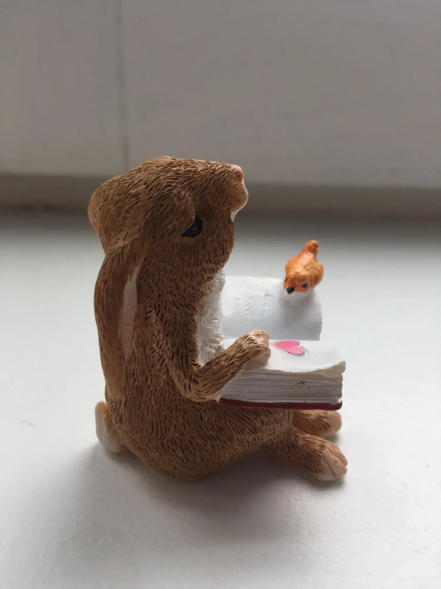 Я люблю эту фигурку кролика с книгой, смоляной. Хорошо окрашенные. Красивое украшение. Картинка такая же. Она скоро прибыла и хорошо защищена. Спасибо, мистер продавец.