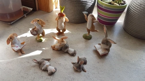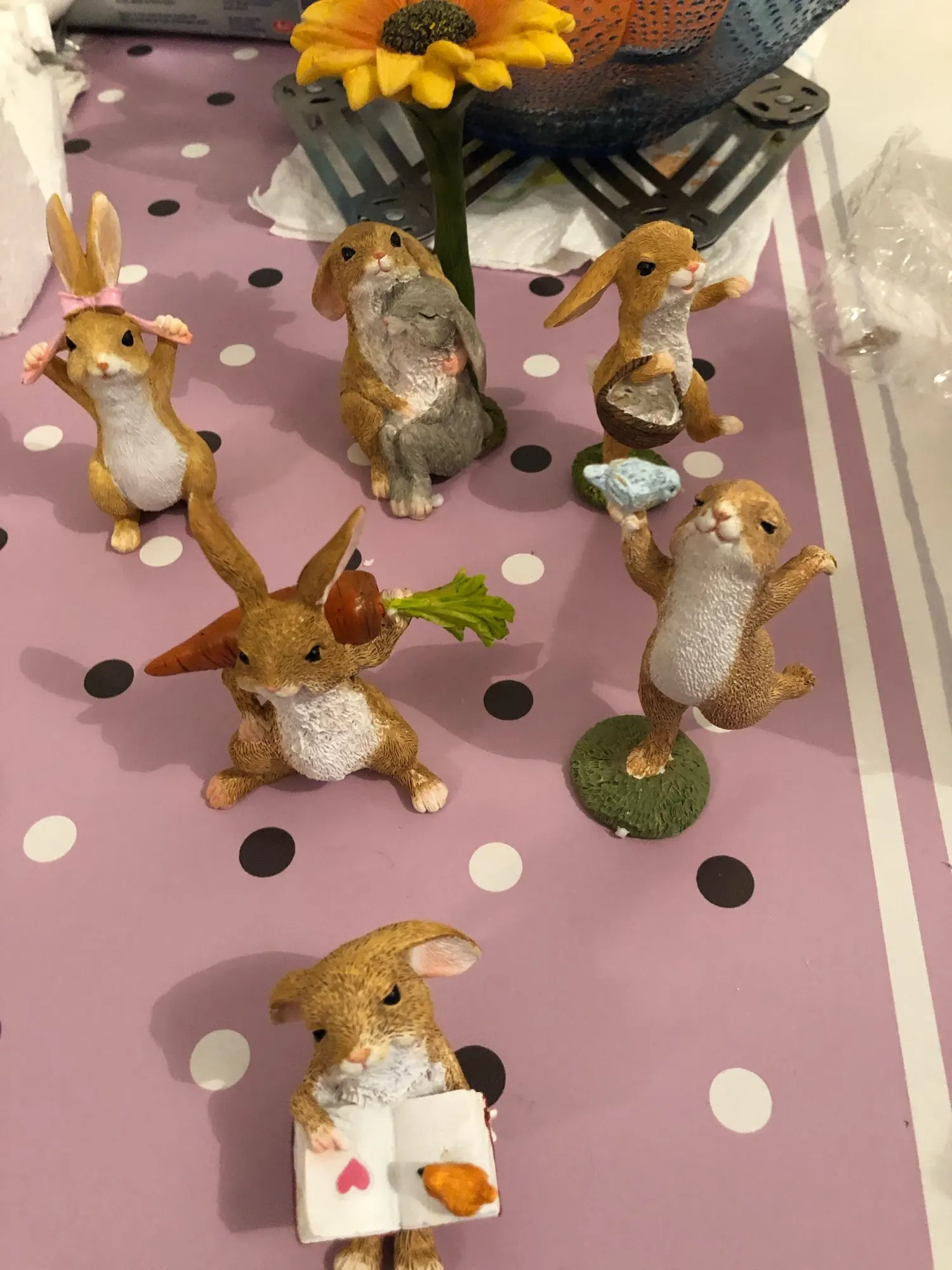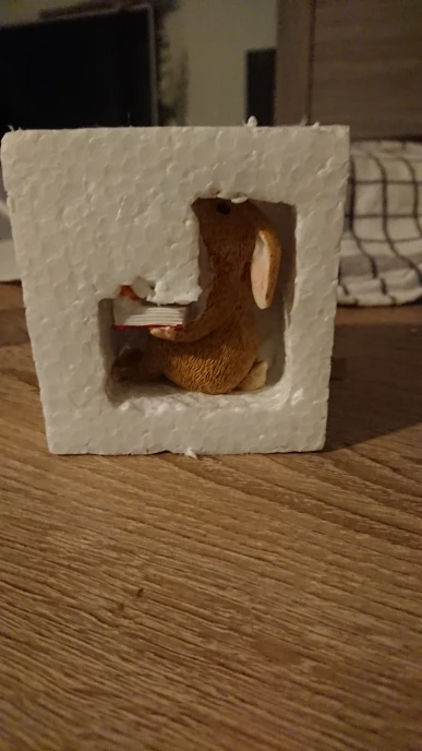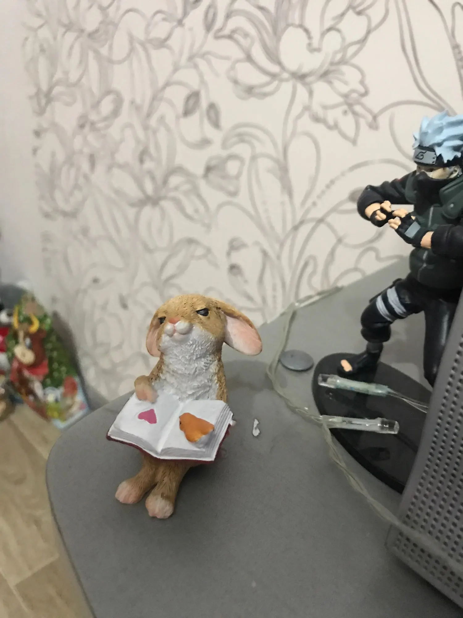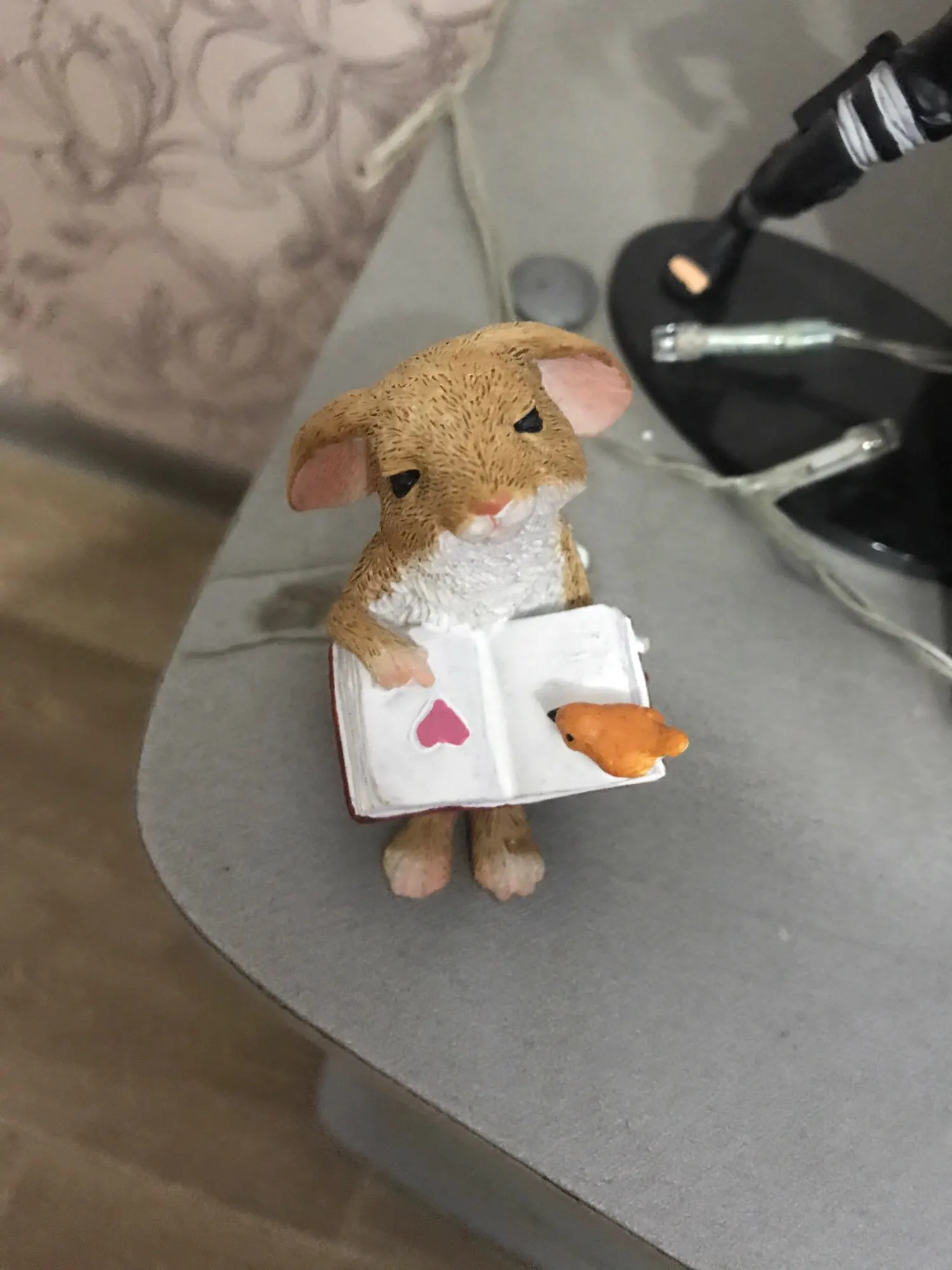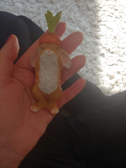 Я люблю эту фигурку кролика с книгой, смоляной. Хорошо окрашенные. Красивое украшение. Картинка такая же. Она скоро прибыла и хорошо защищена. Спасибо, мистер продавец.