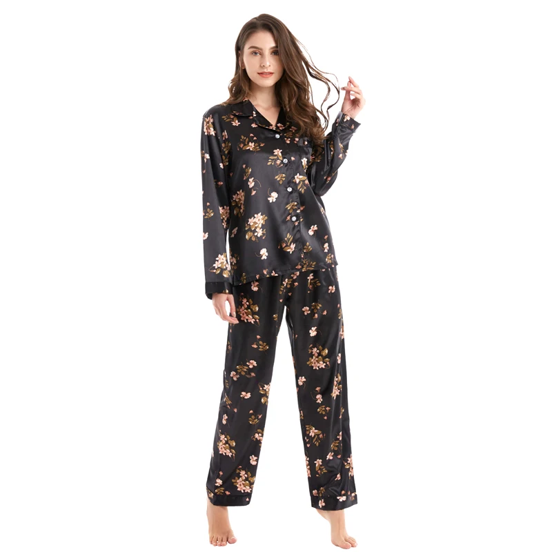 Новое Прибытие женщин Классический Пятен Шелковый Пижамы Установить Ночную Рубашку Дамы Досуг Стиль Для Женщин Сплошной Цвет Пижамы Дома пижама