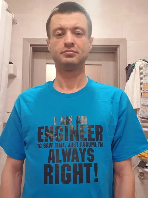Футболка отличная, принт четкий, после первой стирки ничего не вытерлось, а дальше видно будет. Х/б. на 48-50 взяла XL, подошло идеально. Муж прикол оценил, его коллеги тоже в восторге, видимо, будут заказывать себе тоже))