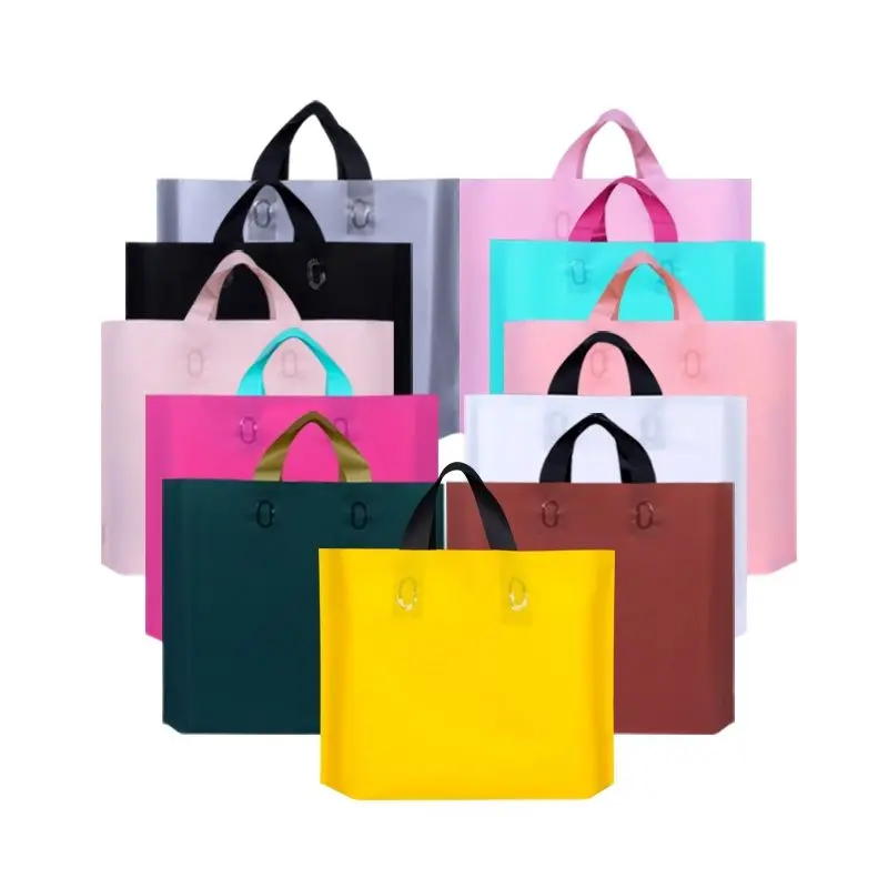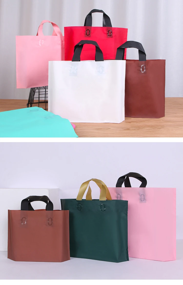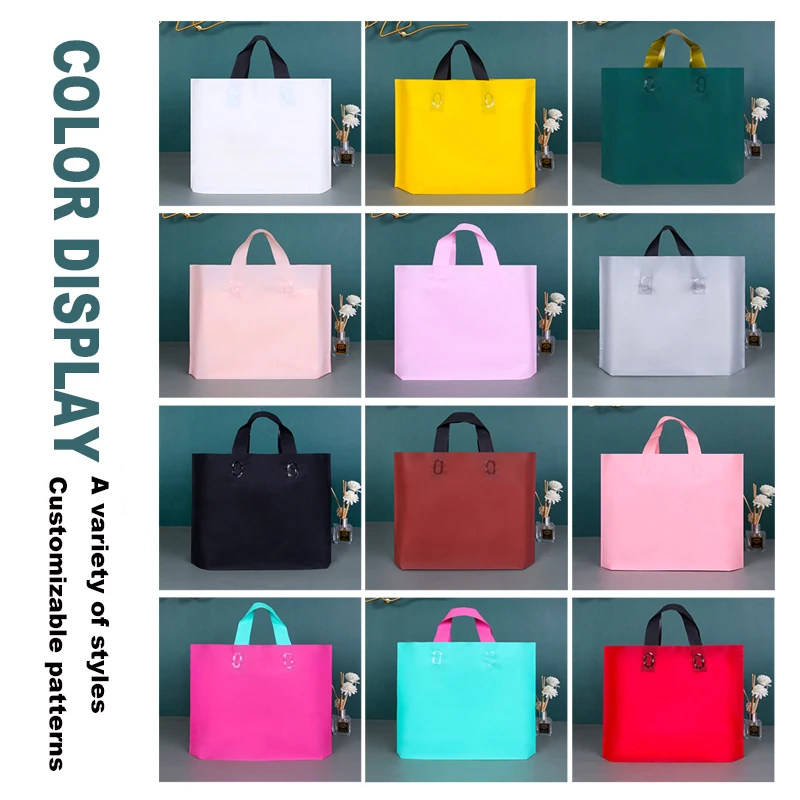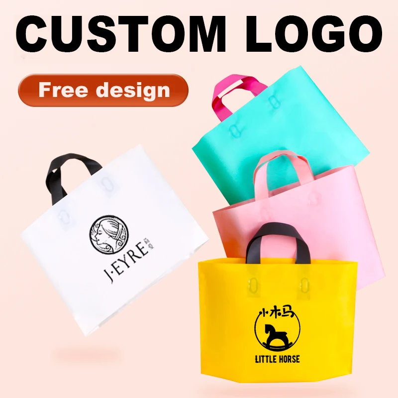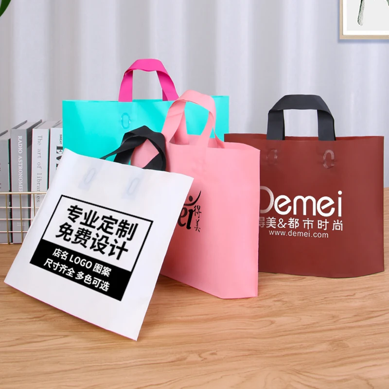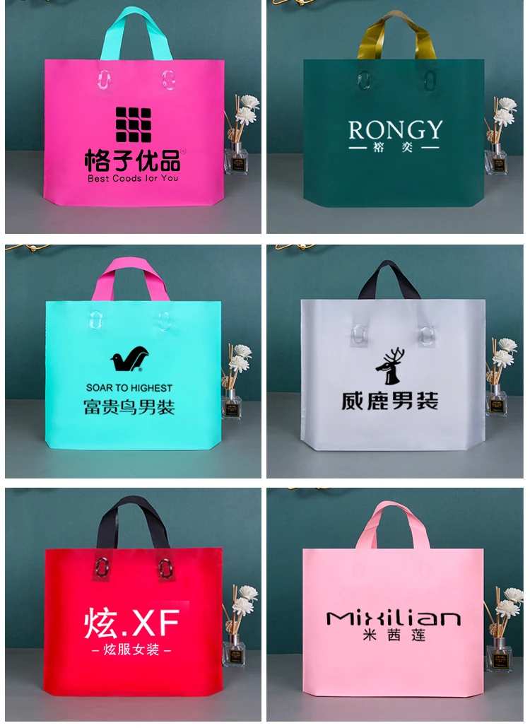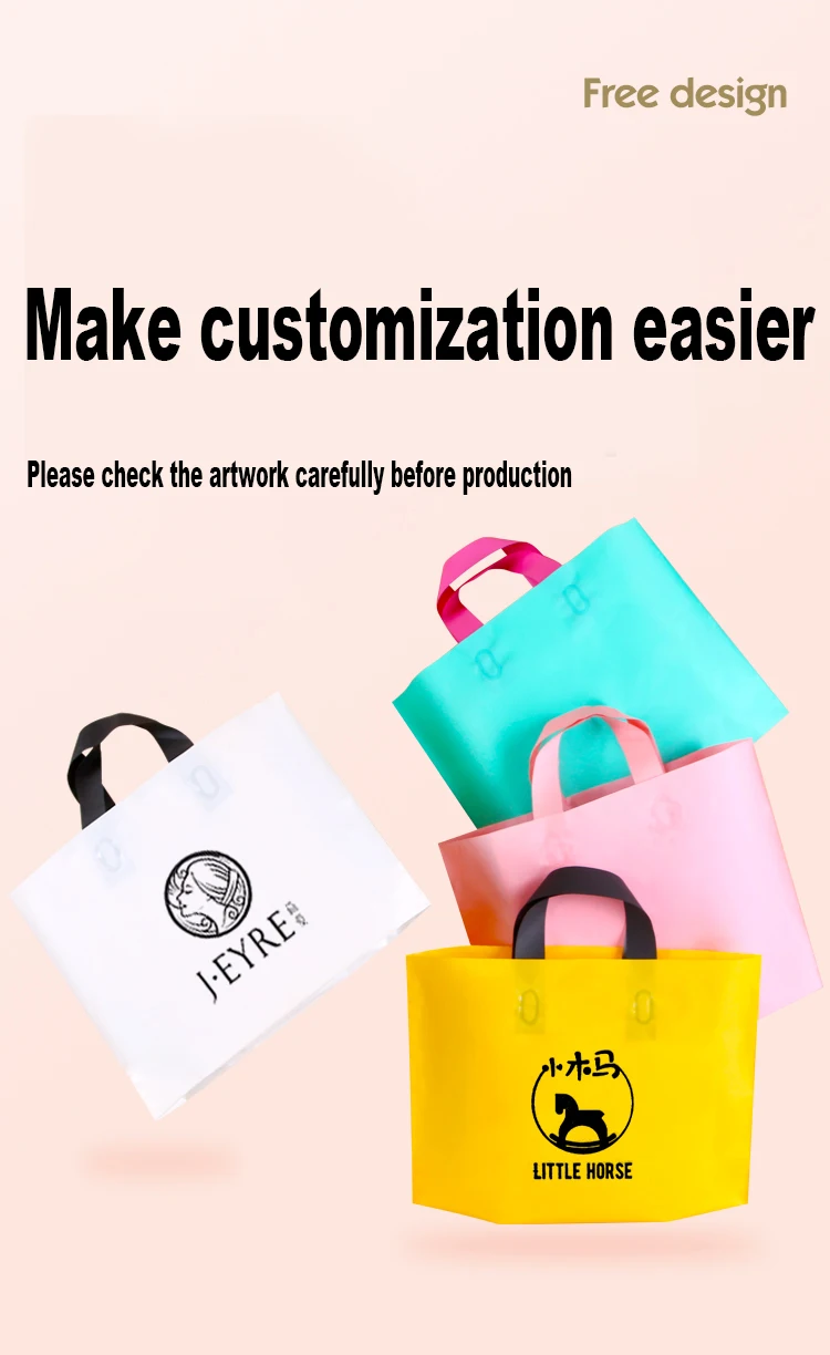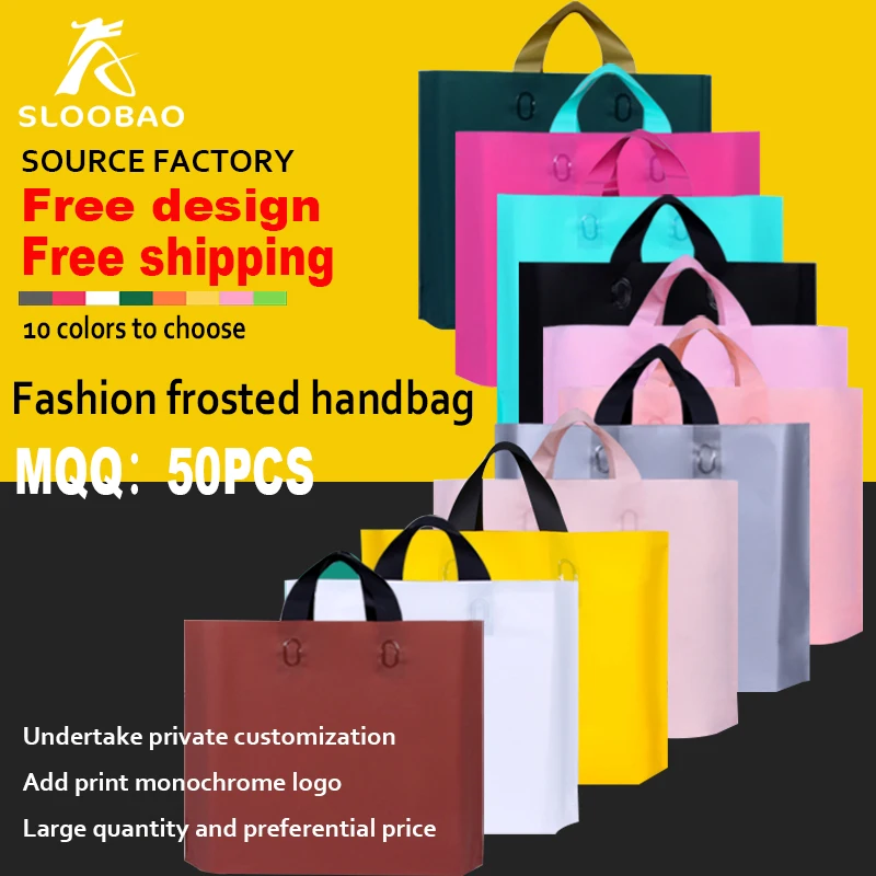 Сумка для магазина с индивидуальным принтом и уникальным логотипом, Плотная матовая пластиковая женская детская одежда, косметички, сумки для покупок, 50 шт.
