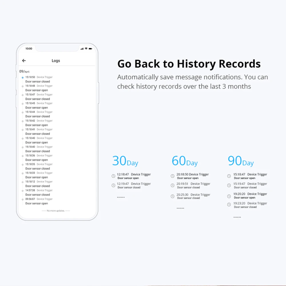 Low-Battery Reminder & History Records Check3-month history records are automatically saved